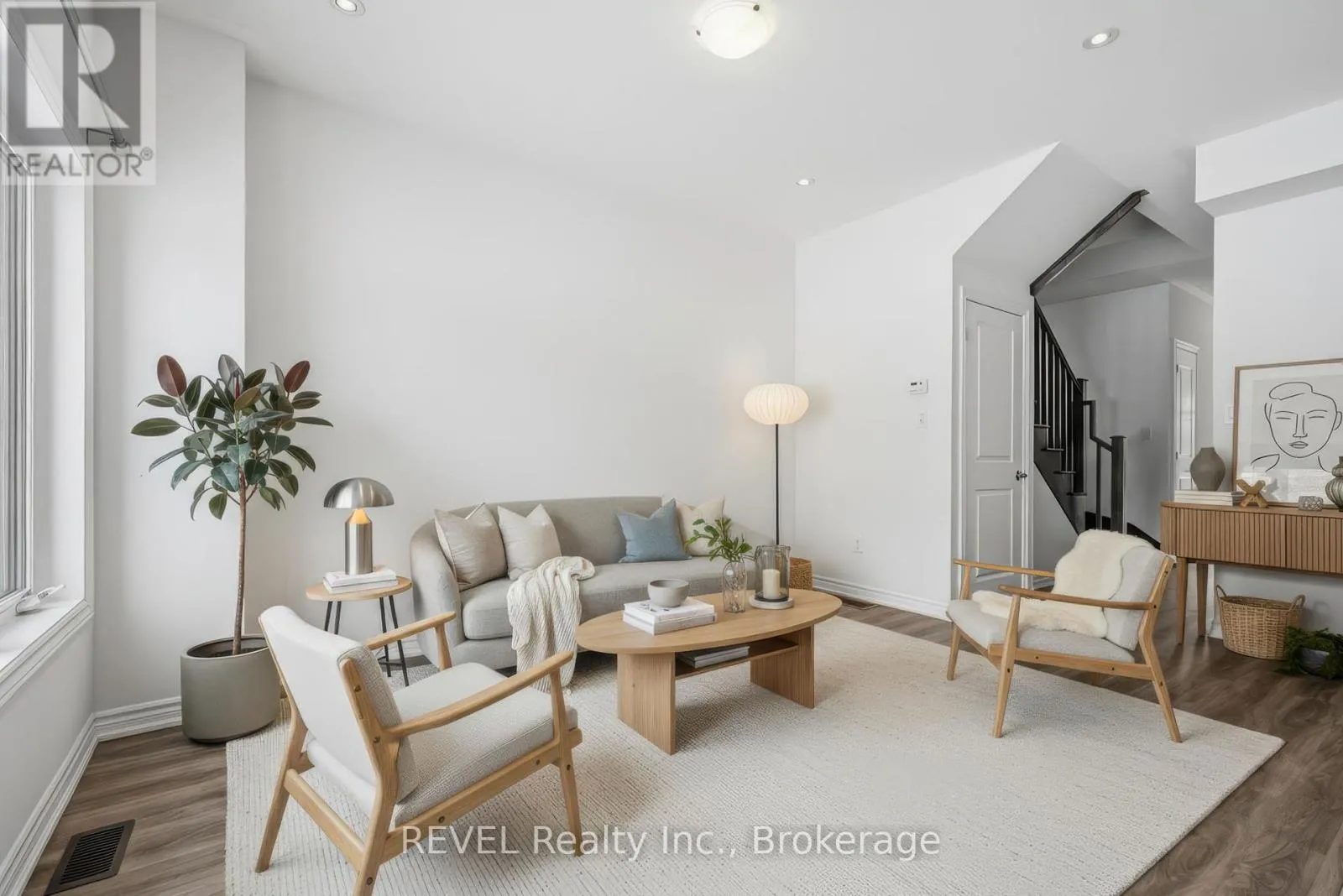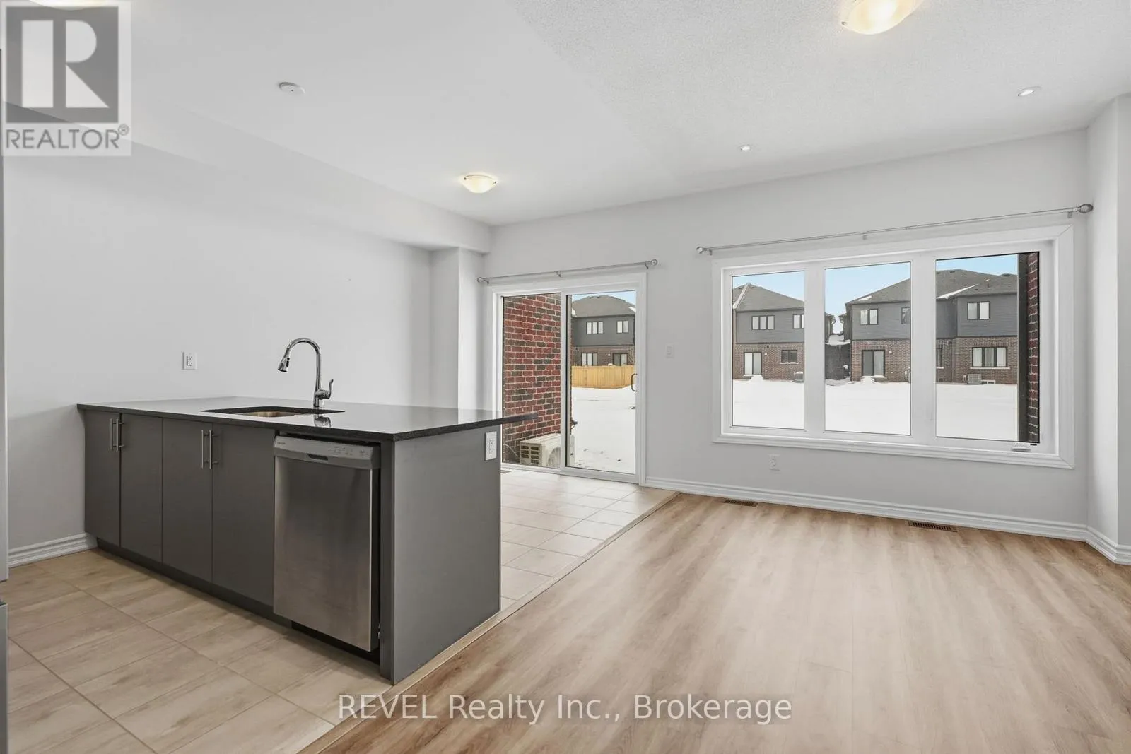This pristine, two-year-old freehold townhouse in the Hunter’s Pointe community offers a clean, move-in-ready layout with 3 bedrooms and 2.5 bathrooms. The home features a stone-covered front porch and an open-concept main floor highlighted by a stylish kitchen with quartz countertops and newer stainless steel appliances. Large windows throughout provide plenty of natural light, and solid wood stairs lead to
