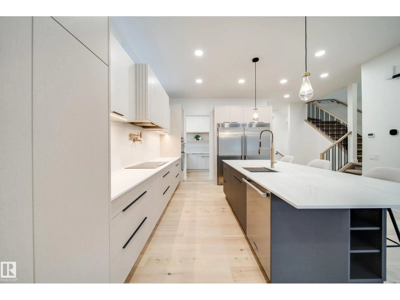 A rare opportunity built by Crimson Cove Homes, in one of Edmonton’s most prestigious areas just off Valleyview Drive! This nearly 2,500 sqft 4 bed, 3.5 bath home is just steps from iconic River Valley views. Inside, 10′ main floor ceilings create a grand feel, w/dbl doors to your office & a stylish 2pc bath featuring marbled Dekton counters. The