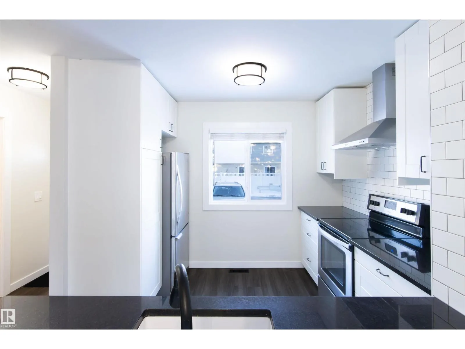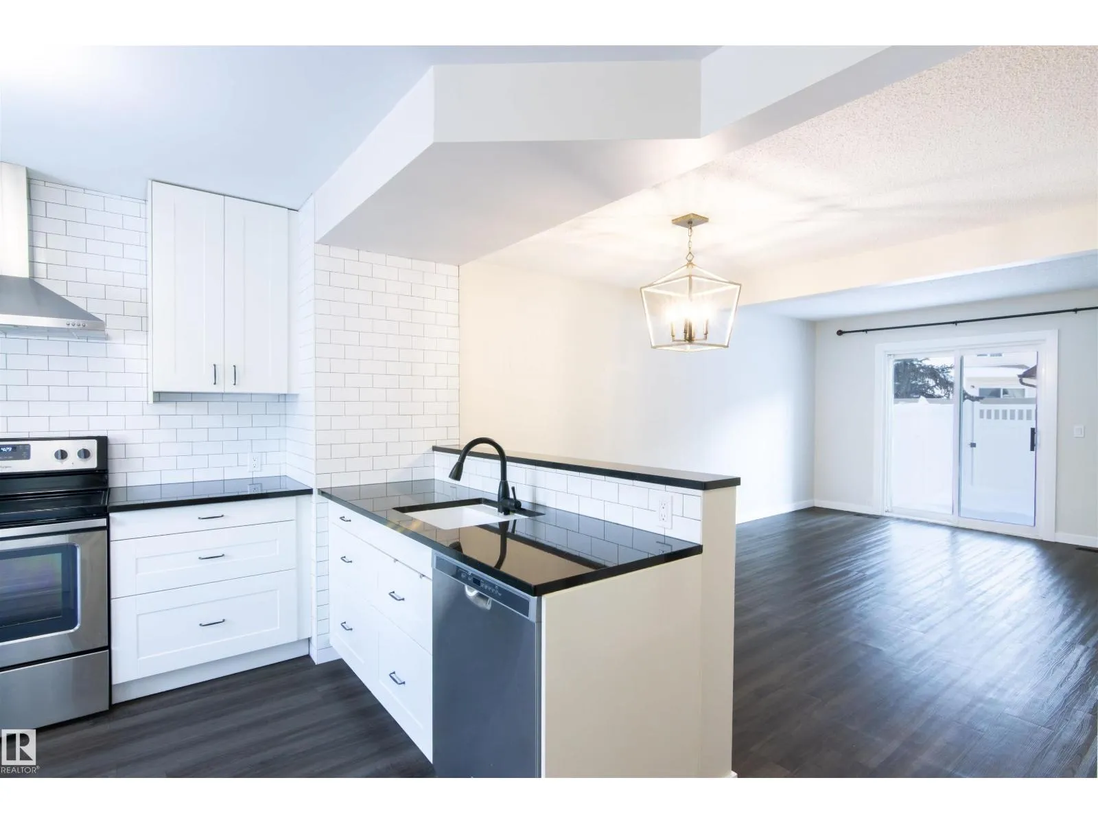 Welcome to Mayfield Mews! This beautifully renovated townhome in the desirable community of La Perle offers low condo fees and a pet-friendly, well-managed complex—perfect for first-time buyers or investors. The open-concept main floor showcases quality flooring, designer lighting, and a stunning kitchen with granite countertops, stainless steel appliances, modern chimney hood fan, full-height soft-close cabinetry, custom subway tile backsplash, and