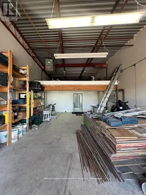 Newly renovated industrial condo unit featuring a drive-in door. This turnkey space offers a bright main office/reception area with an additional private office, plus a designated kitchenette space. A large rear mezzanine provides valuable extra storage (not included in the square footage). Renovations include new flooring and tiles, a fully updated washroom, new pot lights, updated electrical, fresh paint throughout