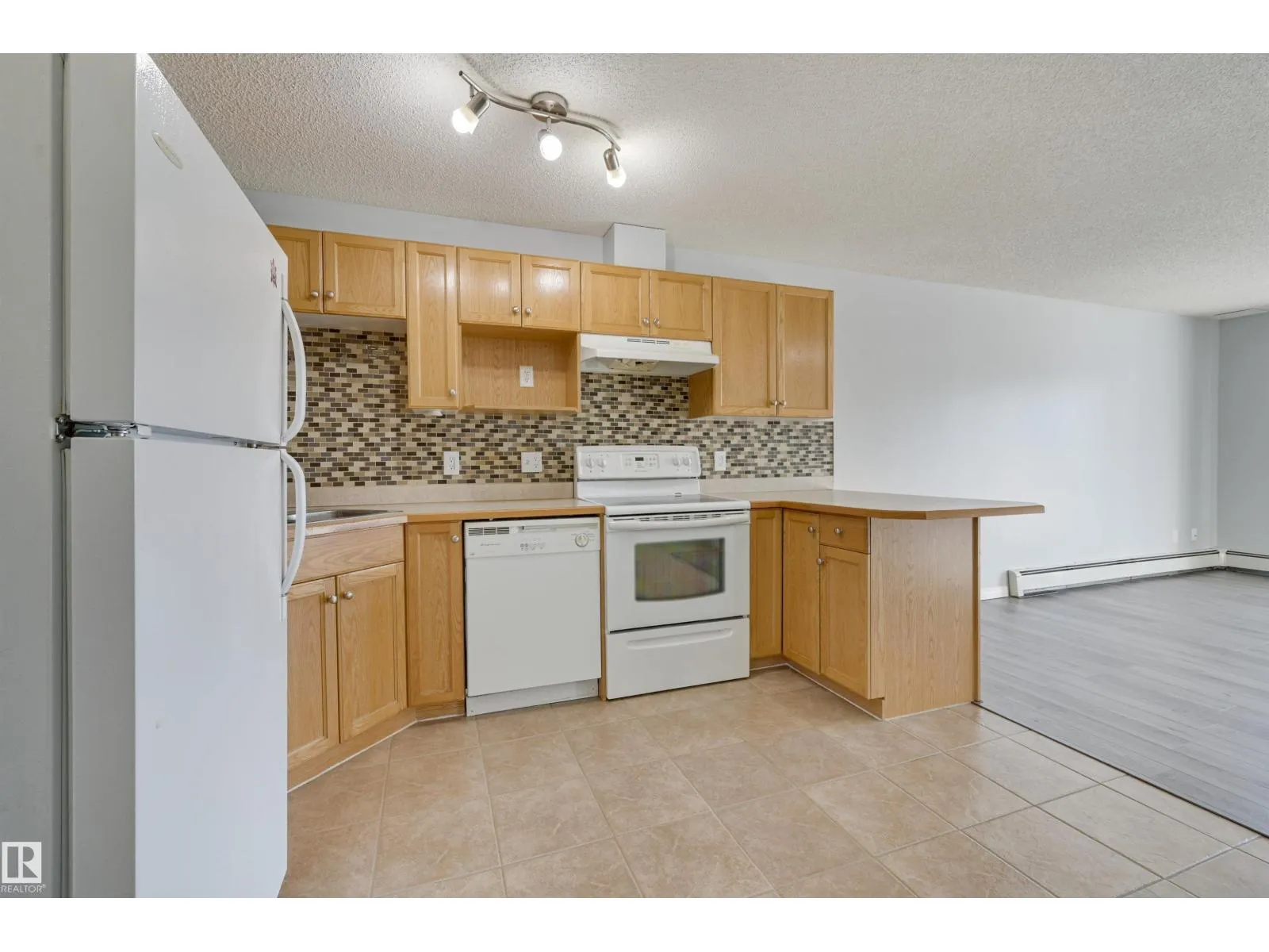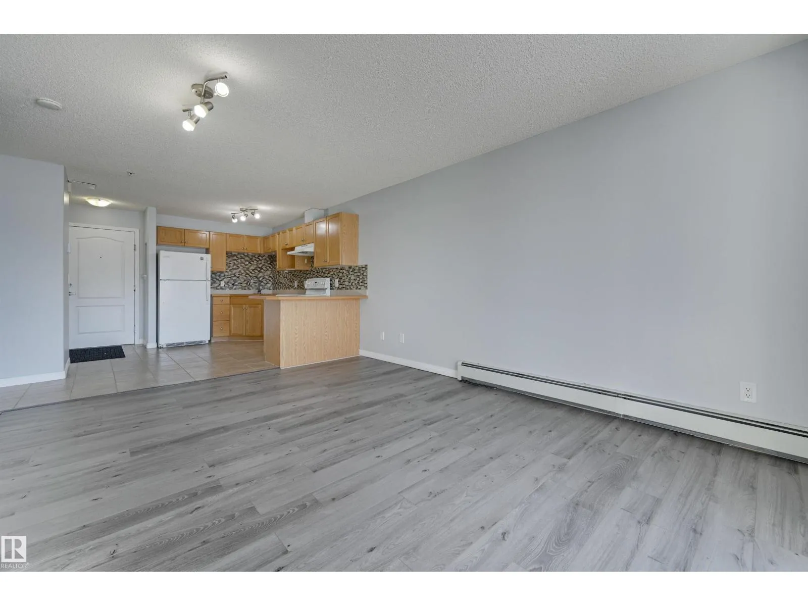 Welcome to this bright upgraded one bedroom condo in Park Place at Eaux Claires! Close to all amenities and easy access to the Anthony Henday. This suite is SW facing providing direct sunlight all day long with nice updates including flooring, paint, ceiling fan, and tile kitchen backsplash. There is a spacious living and dining area with laminate floors. Functional