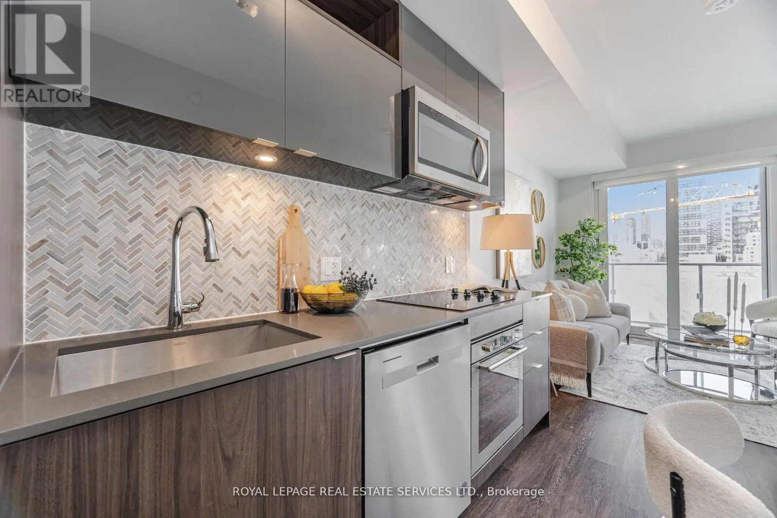 Live at the Centre of It All! This builder-upgraded 1+den condo blends style and function with a modern kitchen featuring quartz countertops, full-height cabinetry, and stainless-steel appliances, plus a spa-inspired bathroom with sleek tilework and designer fixtures. The open-concept layoutis filled with natural light from floor-to-ceiling windows, while the versatile denworks perfectly as a home office or guest space. Enjoy