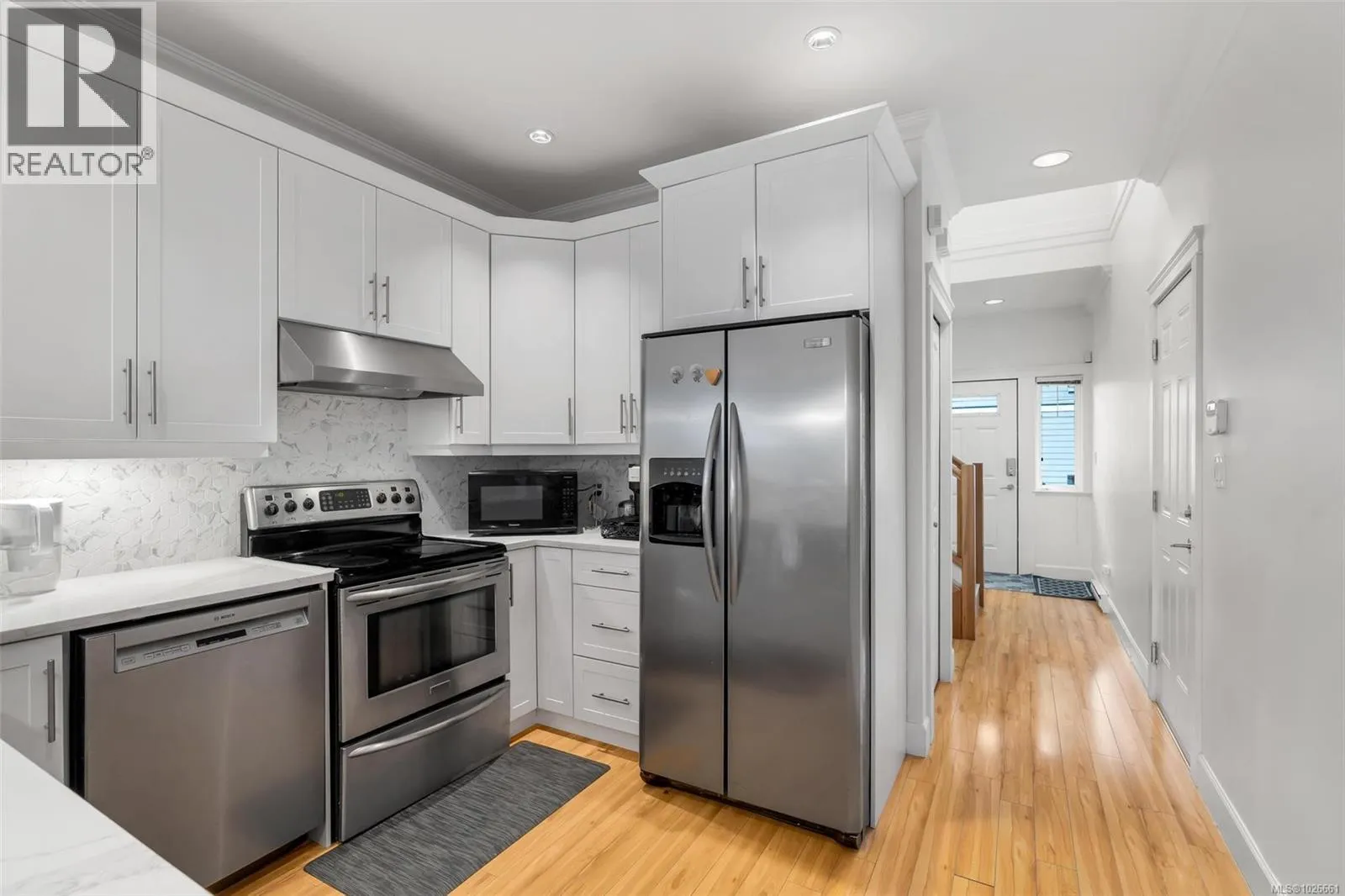 Welcome Home! This stylishly updated 4 bedroom, 4 bath detached home offers the perfect blend of comfort,functionality and privacy.Experience the spacious feel of a single-family home with the convenience of strata living. The bright main floor features vaulted ceilings,a cozy electric fireplace, and a refreshed kitchen with quartz counters,tiled backsplash,and repainted cabinetry. A versatile bedroom ideal for guests, extended family