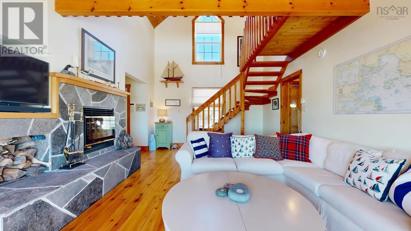 L&S #1297. A Sailors Paradise minutes from Mahone Bay and Chester. Stylish, contemporary and filled with natural light, this south-east facing coastal retreat is perfectly sited to capture mesmerizing water views. Wonderfully elevated and exceptionally well-maintained, this 2600 sq ft home spans 3 levels and offers the ultimate South Shore lifestyle. The main floor features an open-concept living area,