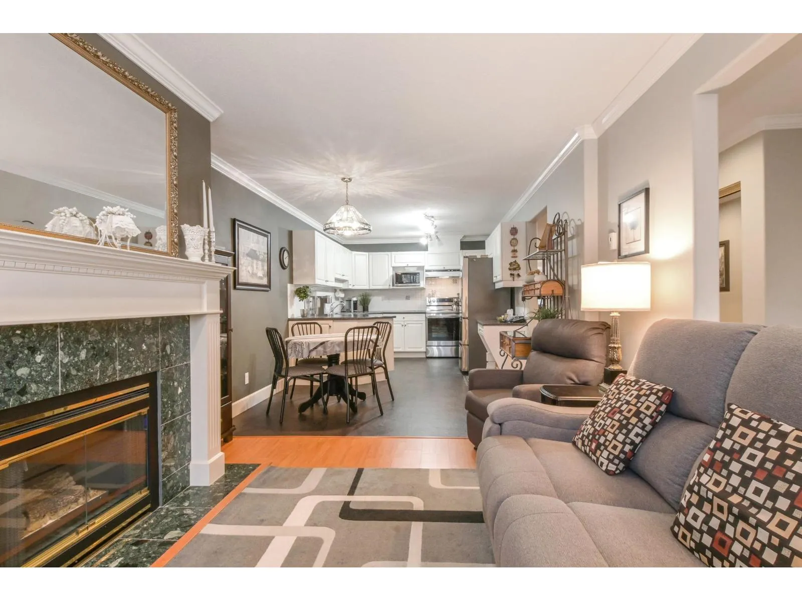 RARELY AVAILABLE IN CHELSEA GARDENS! This Main level unit is in a PRIME location inside the complex, backing onto a water feature & beautiful landscaping which provides privacy most units do not have. Just steps off your private patio is the clubhouse & pool/hot tub! Enjoy over 1550sqft on a single floor, an updated kitchen with stainless steel appliances, an