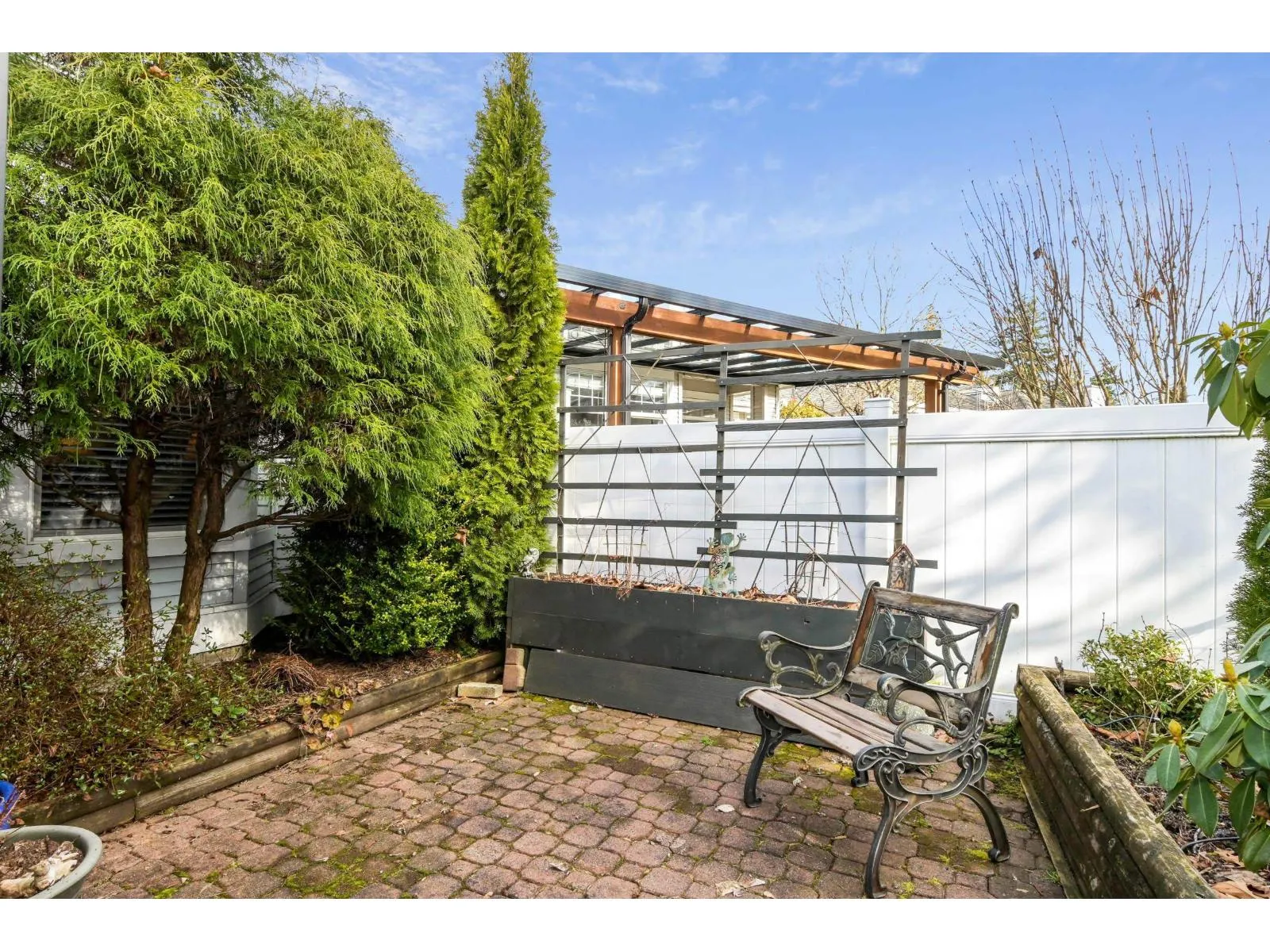 Munday Creek rancher townhome with no stairs! This 2 bed, 2 bath home offers formal living and dining areas, two gas fireplaces, and a bright kitchen, family room, and eating area that walk out to a south-east facing patio backing onto greenbelt. Spacious primary bedroom with walk-in closet and 5-piece ensuite. Updated with a Navien tankless hot water system. Located
