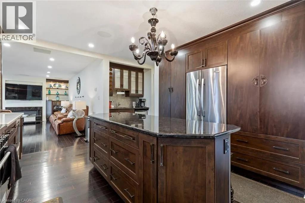 ambiance of the living room. The chef’s kitchen impresses with stainless steel appliances, granite countertops, and hardwood flooring. The primary bedroom serves as a private retreat with a 3-piece ensuite, a walk-in closet, and hardwood floors. Three additional bedrooms provide ample space, including one with serene lake views and others overlooking the lush front yard. The versatile lower level includes a bedroom, a full washroom, and walk-up access to the backyard oasis. Outdoors, enjoy a 16′ x 40′ concrete pool set against a tranquil waterfront backdrop, along with a private outdoor sauna for ultimate relaxation. This home effortlessly blends luxury, comfort, and style—perfect for your refined lifestyle.**Survey Available** (id:62650)