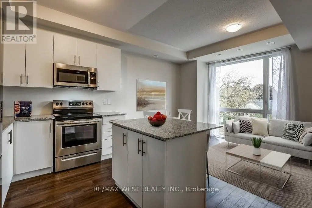 Fabulous 2-bedroom town home nestled in a quiet residential pocket of Etobicoke. Beautiful & bright open concept design. Wood flooring throughout. Floor-to-ceiling windows that create a very airy feel. Beautiful kitchen with granite counters, stainless steel appliances & centre island/breakfast bar. Walk-out to rooftop terrace. One underground parking spot included. Conveniently located within walking distance to Islington subway, Sobeys, shopping
