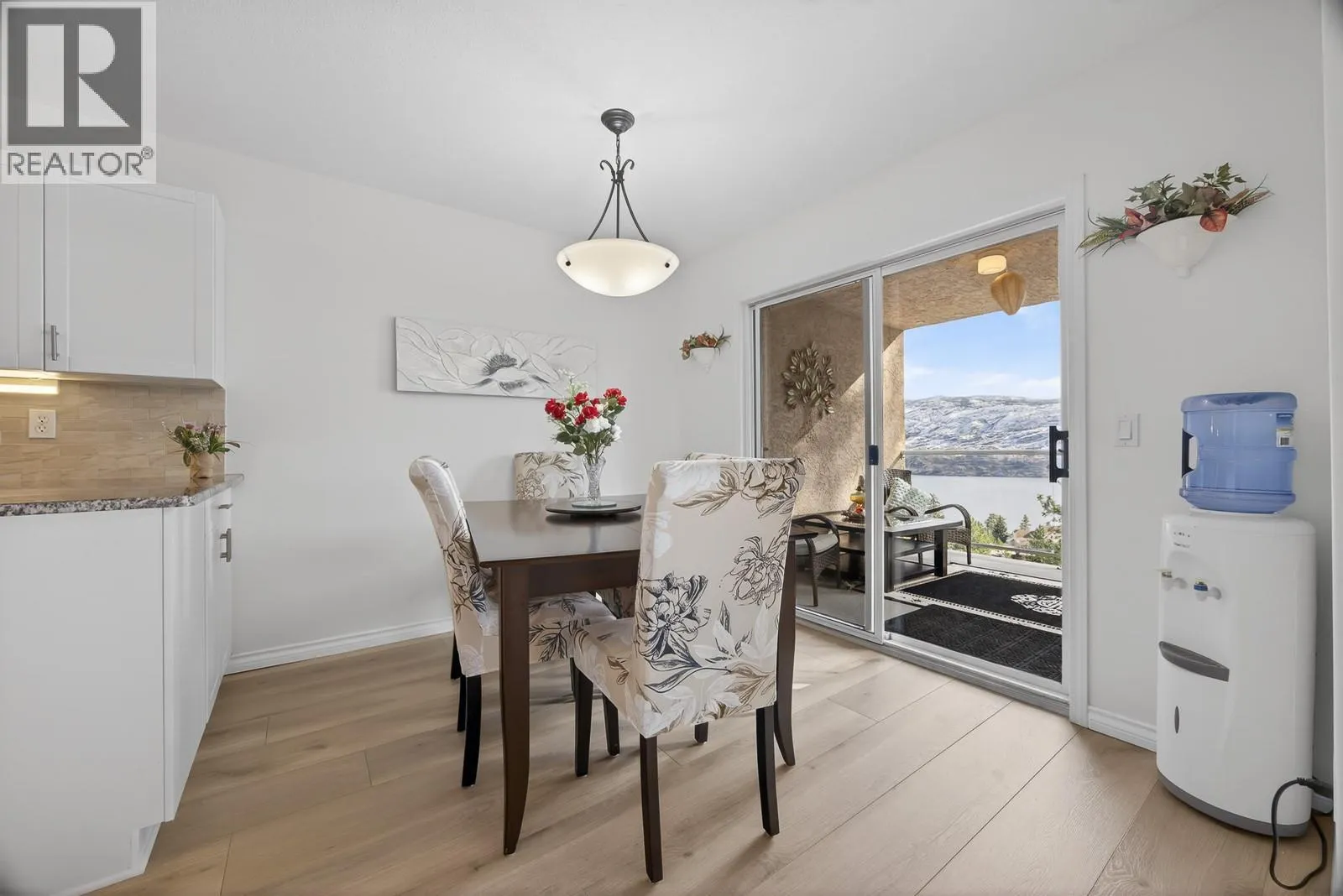 Welcome to 112-4630 Ponderosa Dr, a stunning 2-bedroom townhome in Chateaux on the Ridge, Peachland. This executive suite offers a perfect blend of luxury and practicality, ideal for those looking to downsize or for young professionals seeking a low maintenance lifestyle without compromising on quality or views, with the added benefit of convenient one-level living. Enjoy breathtaking 180-degree views of