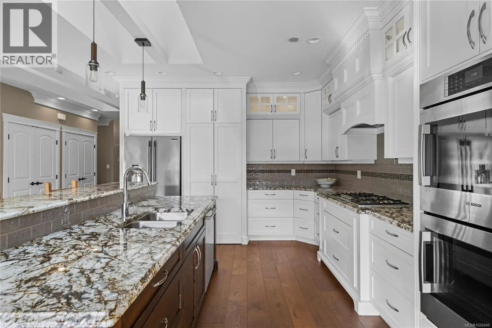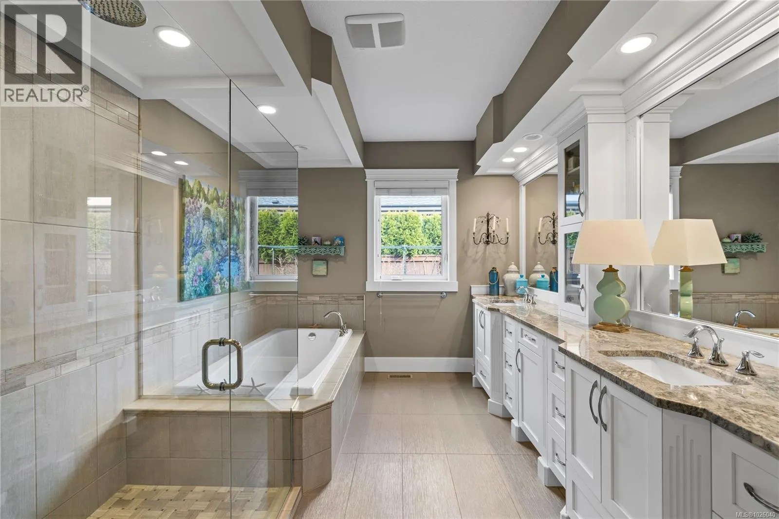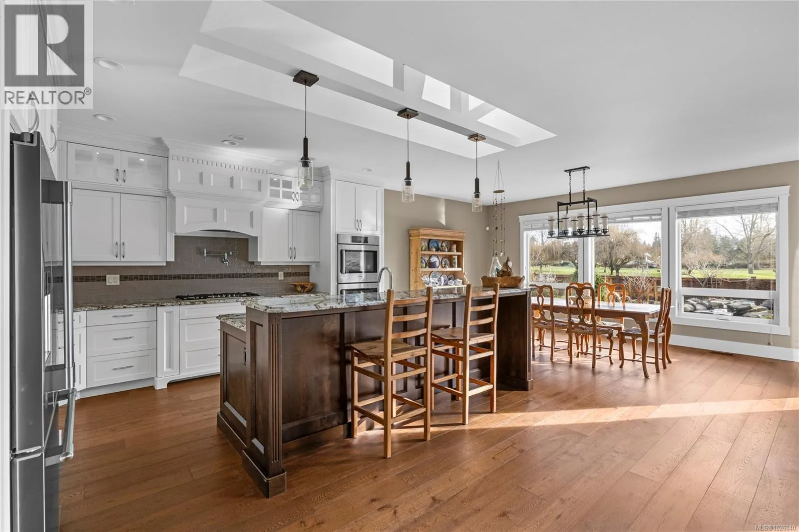Executive Eaglecrest Rancher overlooking exquisite landscaping to the verdant golf course beyond. This south-facing garden enjoys an array of perennial colour, a fountain bubbling into a pond that doubles as a plunge pool, & a vista which feels like living on manicured park land. A timber framed patio is the ideal spot to soak up winter sun in Feb. or