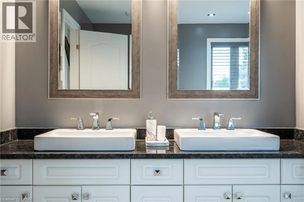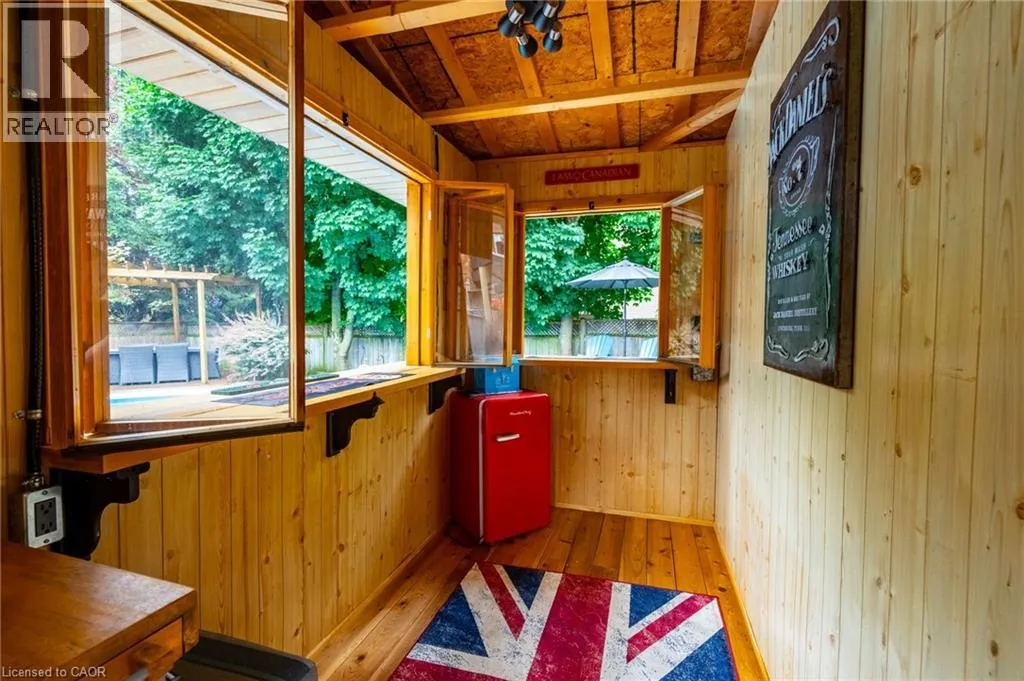 irrigation. Inside, a grand foyer opens to a spacious main floor featuring a formal dining room, a private living room and a functional mudroom/laundry area. The heart of the home is the open-concept kitchen and family room with custom built-ins and a gas fireplace – ideal for everyday living or hosting. Upstairs offers four generous bedrooms plus a large office or recreation room which can be converted to a fifth bedroom, including a luxurious primary suite with walk-in closet, spa-like five-piece ensuite, electric fireplace and a private sitting area. The updated main bathroom features heated floors and a towel rack. The fully finished lower level includes a large recreation room, an additional bedroom and a three-piece bath. A walkout leads to your private backyard retreat: a multi-tier composite deck, a covered hot tub, a heated pool, multiple lounging and dining areas, a pergola and a cedar pool house with electricity. Notable upgrades include Lutron switches and pot lights, California shutters, central vacuum, front yard irrigation, exterior landscape lighting, Swiss Trax garage flooring, new front and garage access doors plus a rear patio door with retractable screen and a monitored smart home alarm system — plus much more. See attachments for full details. This exceptional home in one of Waterdown’s most sought-after neighbourhoods checks every box. Don’t be TOO LATE*! *REG TM. RSA. (id:62650)