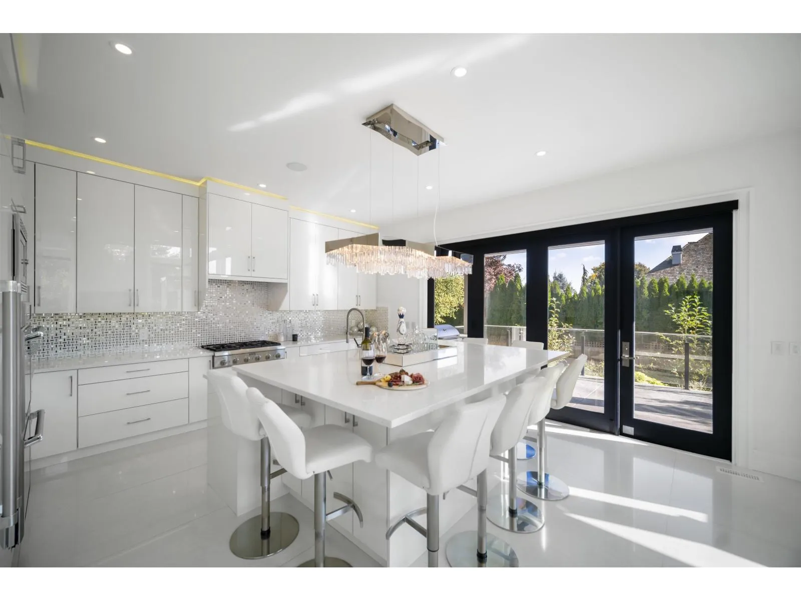Custom built Morgan Creek residence exemplifying quality craftsmanship with glitz and glamour. Over 4,300sqft of luxurious living space complete walls of windows, stone slab floors, custom wallpaper, crystal chandeliers and modern design throughout. Grand double-height great room with ample natural light, chef’s dream kitchen complete with Thermador appliances and accordion doors creating an indoor/outdoor entertainment space. 2 Primary Suites; one
