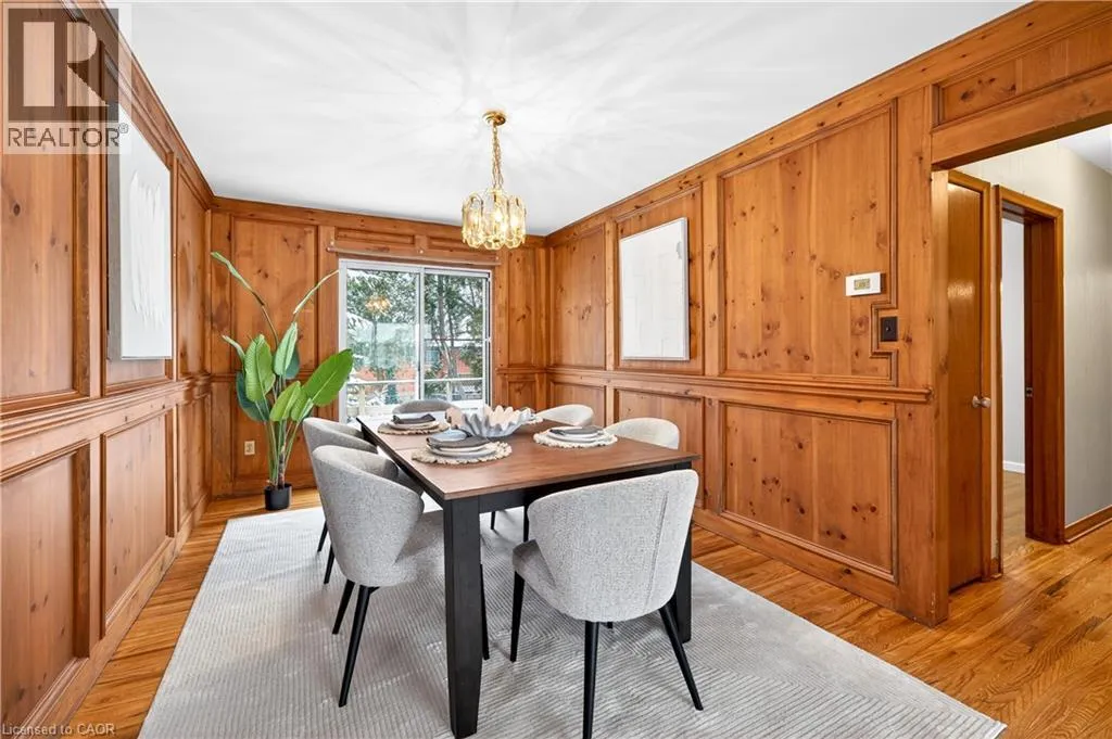 a walk-out to the backyard deck, ideal for entertaining or everyday enjoyment. Additional features include a large, detached garage, 100-amp electrical service with breakers and a partially finished basement offering valuable additional living space. This original owner home also includes a driveway with parking for up to five vehicles. Notable updates include electrical, shingles, furnace, and air conditioning. Walking distance to Mohawk College and conveniently located near major highways, public transit, shopping, schools, parks, hospitals, and places of worship. Situated in a well-established, family-friendly community, this property is ideal for commuters, families, students, or investors alike. Priced to sell—don’t miss this exceptional opportunity. (id:62650)