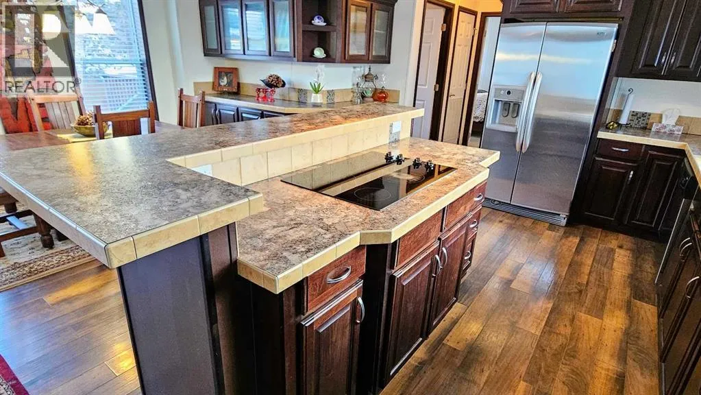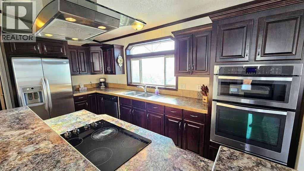 for both everyday comfort & effortless entertaining. The large living room is flooded with natural sunlight from expansive windows & features a cozy wood-burning stove – perfect for curling up on cool evenings. With plenty of room for all your furniture, this inviting space truly feels like home. The well-laid-out kitchen is a showpiece, offering stainless steel appliances, a countertop stove set into the generous island, a wall-mounted oven, & a built-in microwave. The expansive island with eating bar seating becomes the heart of the home – a natural gathering place where friends linger, kids share stories from school, & meals are prepared with ease. Just beyond, the dining area easily accommodates a large family table & is enhanced by built-in cabinetry for added style and storage. The thoughtfully designed layout offers privacy & functionality. The large primary bedroom provides ample space for your full bedroom suite & personal retreat. The luxurious 5-piece ensuite is sure to impress, featuring double sinks separated by a relaxing jetted soaker tub & a spacious corner shower. At the opposite end of the home, you’ll find two additional generously sized bedrooms & a bright 4-piece main bathroom – ideal for family or guests. Step outside to your expansive fenced yard, where multiple outdoor living & entertaining areas await. There’s plenty of room for both two-legged & four-legged family members to run & play. And if you need even more space for recreation, a park just up the alley offers even more room to enjoy the outdoors. The oversized, finished, & heated single garage completes this exceptional property, providing comfort & convenience year-round. There’s even room to park your RV on the parking pad located at the front of the property! This is a rare opportunity to enjoy modern elegance, functional design, & true pride of ownership – all at an affordable price point. Spacious, stylish, & move-in ready, this NW Sundre gem is a must see! “Home Is Where Your Story Begins!” (id:64429)