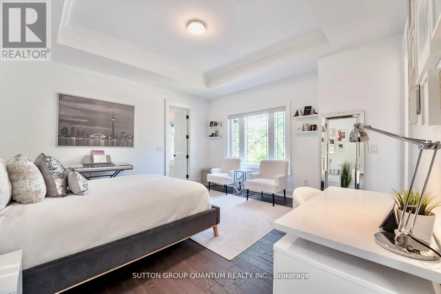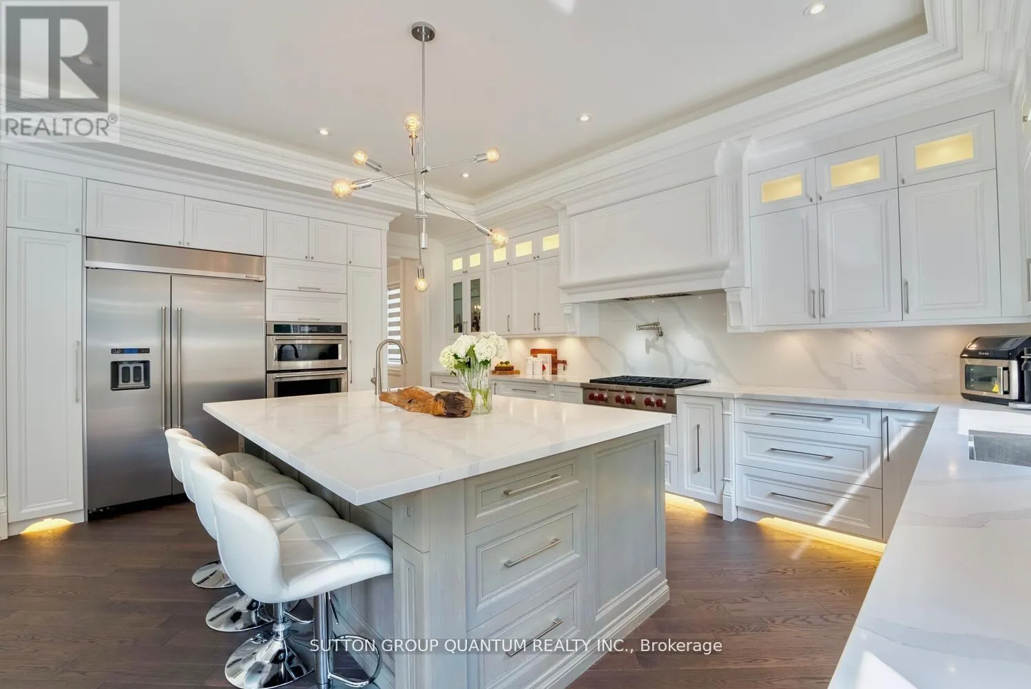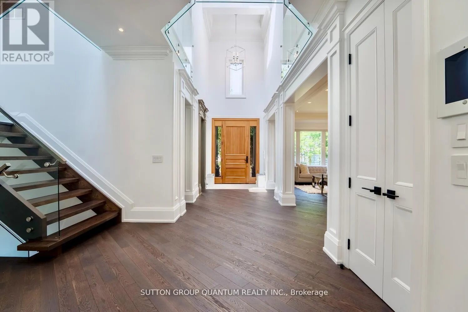 Experience unparalleled luxury in this exquisite custom-built home, completed in November 2020. Spanning around 5,000 sq ft, this residence features soaring 10-foot coffered ceilings and a unique walk-up basement apartment with its own kitchen and laundry perfect for an in-law or nanny suite. Step inside to a welcoming 24-foot foyer filled with natural light, complemented by elegant glass railings and
