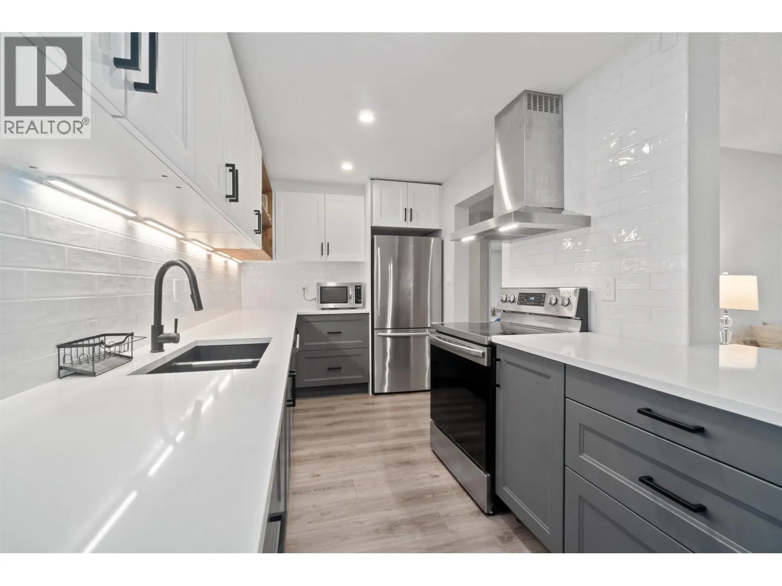 Bright and spacious CORNER UNIT with sunny south exposure. This well-kept home features a modern kitchen with quartz countertops, stainless steel appliances, backsplash, and undermount lighting. The bathroom offers a double sink vanity, deep soaker tub, and updated lighting. Comfortable living room with gas fireplace, separate dining area, and access to an enclosed solarium/flex space – ideal for a home
