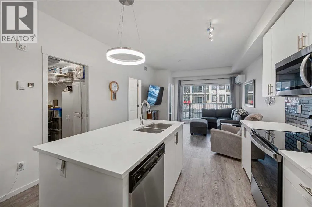 Welcome home to your beautifully UPGRADED MODERN two bedroom plus den/storage condo featuring 9 ft ceilings, LUXURY VINYL PLANK flooring throughout, CENTRAL AC, and more. The spacious kitchen offers QUARTZ countertops, full height cabinets, STAINLESS STEEL appliances, and a large ISLAND overlooking the dining and living areas, perfect for everyday living and entertaining. This ground floor unit features a large
