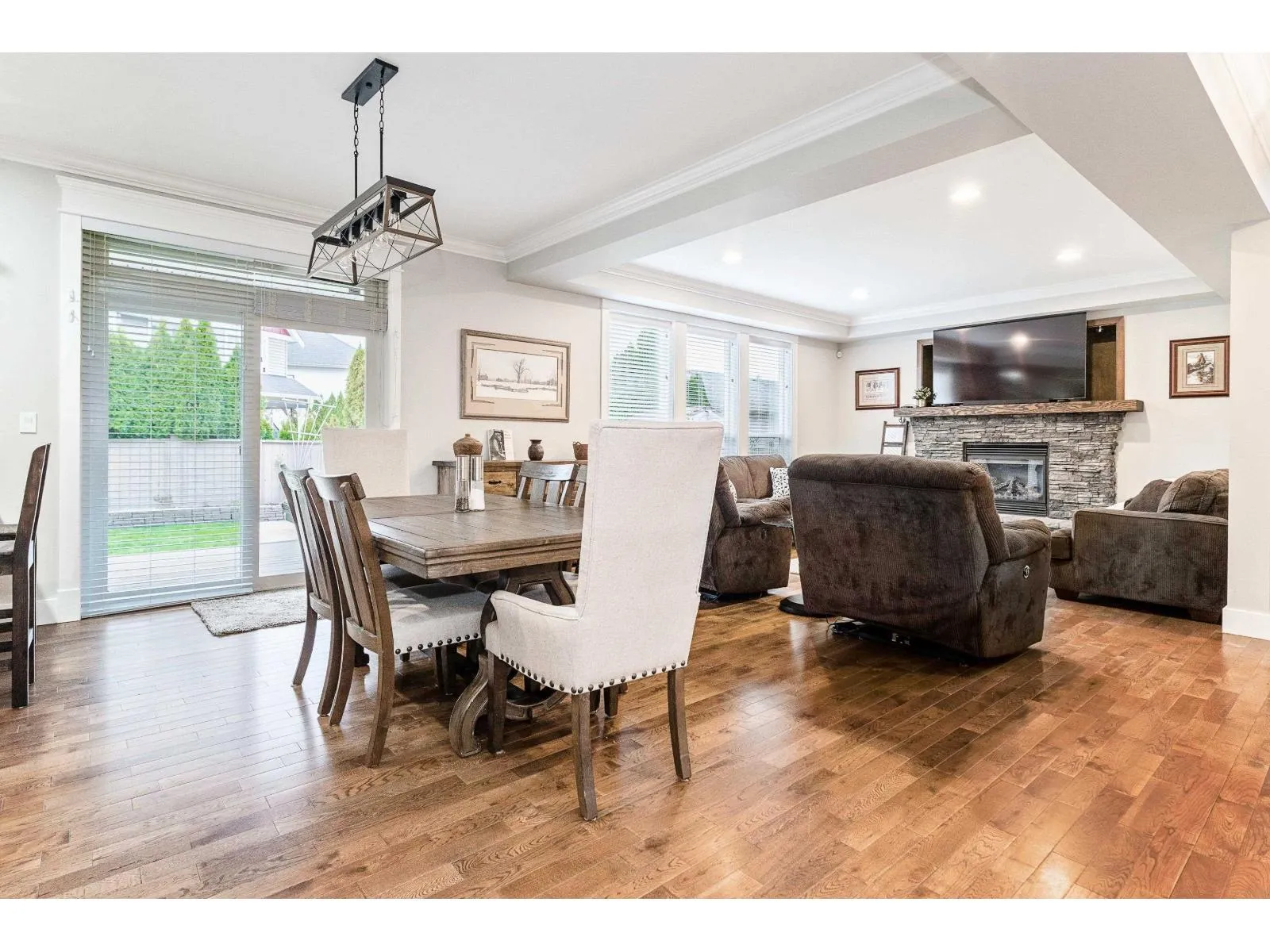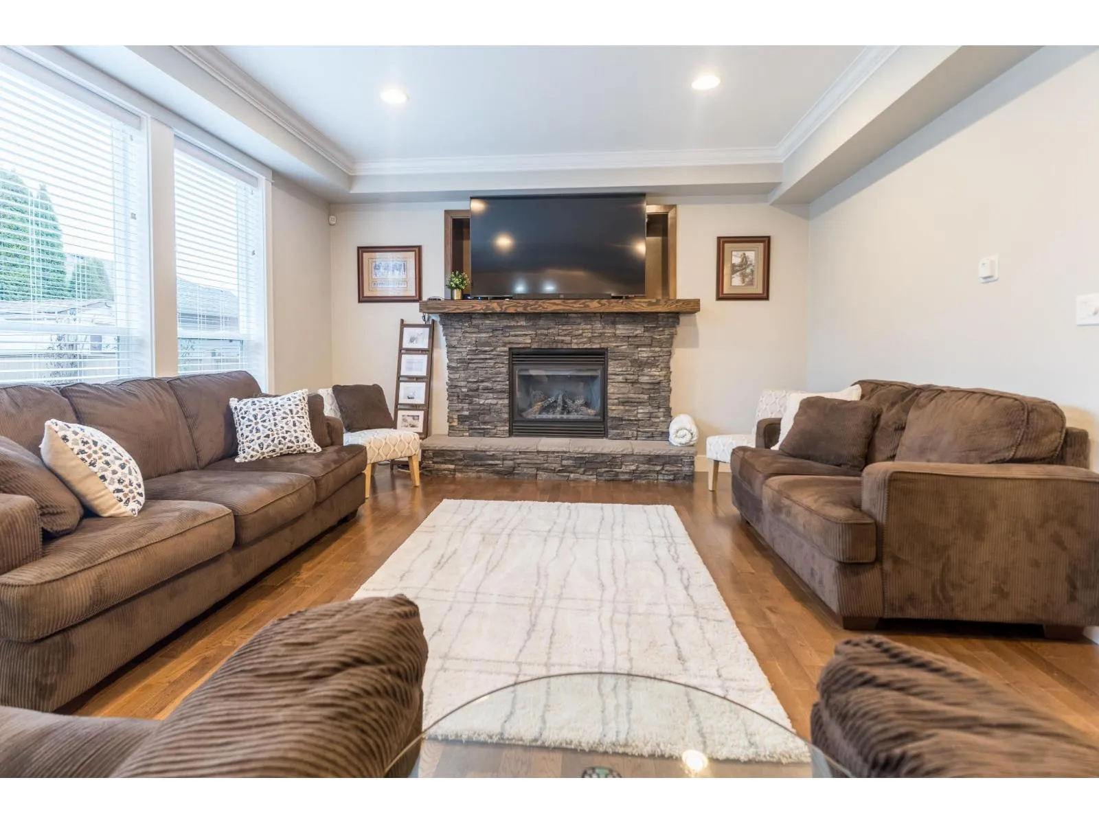 Custom built home with no expense spared! This open concept home features 9′ ceilings, and a floor to ceiling slate stone fireplace perfect for cold winter nights! Air conditioning keeps it cool even on the hottest summer days! Stunning deep hardwood flooring, brand new carpeting, wainscoting, crown moldings, granite countertops, top of the line SS appliances including gas stove, dark