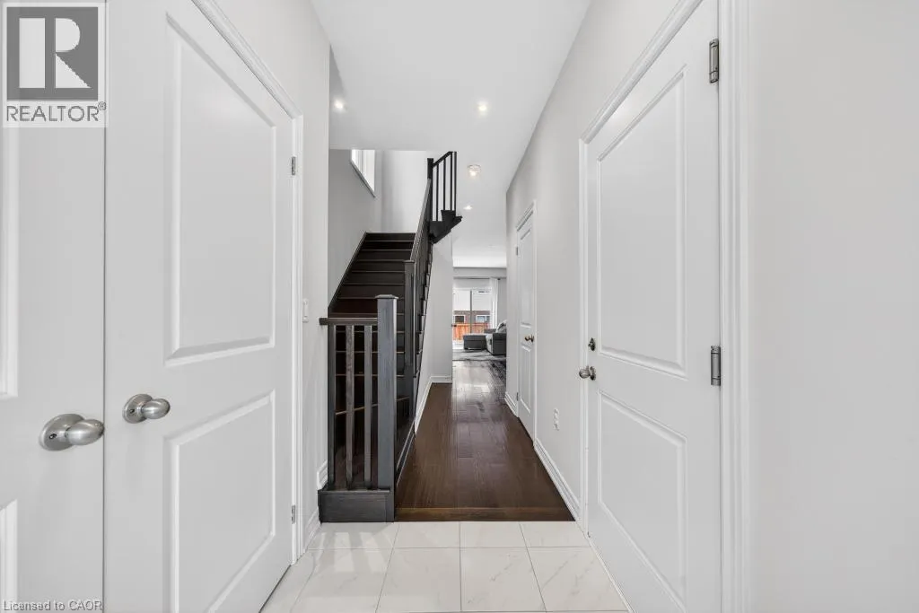 formal dining space, ideal for everyday living and entertaining. The kitchen is both practical and polished, complete with quartz countertops, stainless steel appliances, a pantry, and ample storage. Upstairs, you’ll find three generous bedrooms, including a comfortable primary retreat with an ensuite bath, and two walk-in closets. The basement offers large windows, a laundry room, and a rough-in, leaving it open for endless possibilities. Step outside to a professionally interlocked private backyard, accessible from both the living and dining rooms – perfect for summer gatherings or quiet evenings at home. Located just minutes from schools, recreation centres, parks, GoodLife Fitness, CF Lime Ridge Mall, grocery stores, and countless restaurants, this home delivers comfort and convenience at your doorstep. (id:62650)
