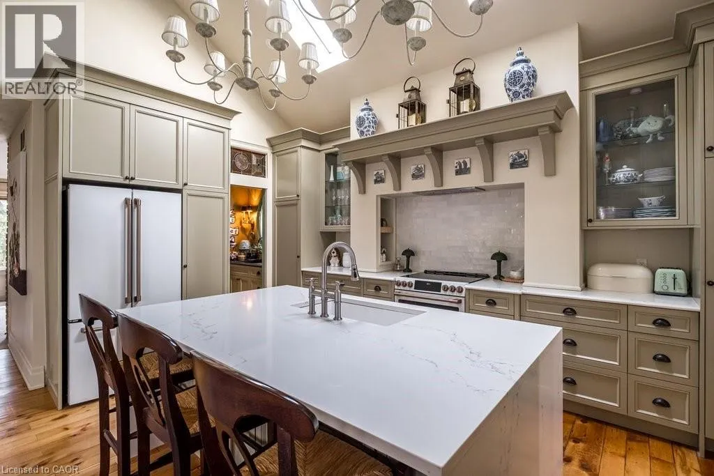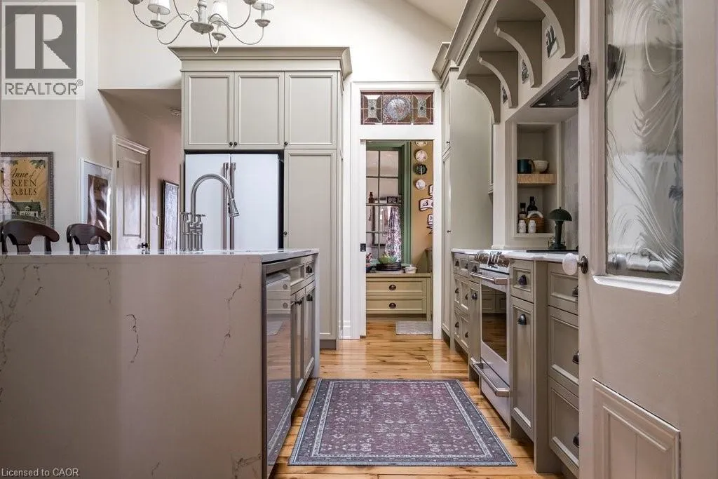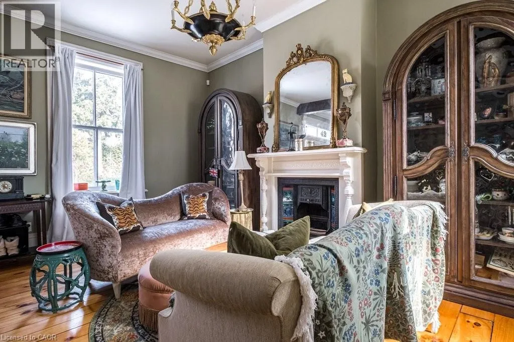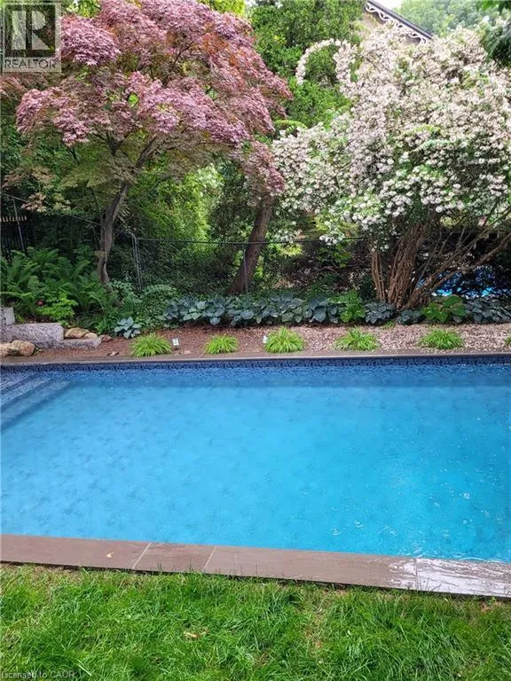 Dundas Dream. This circa 1880 character cottage, located in the heart of the Cross-Melville heritage district, is walkable to everything. Storybook curb appeal with beautiful perennial landscaping is unassuming from street level with a two full stories in the rear. Private forest on a 72′ double wide lot, featuring a sunken garden and inground, heated saltwater pool surrounded by lush