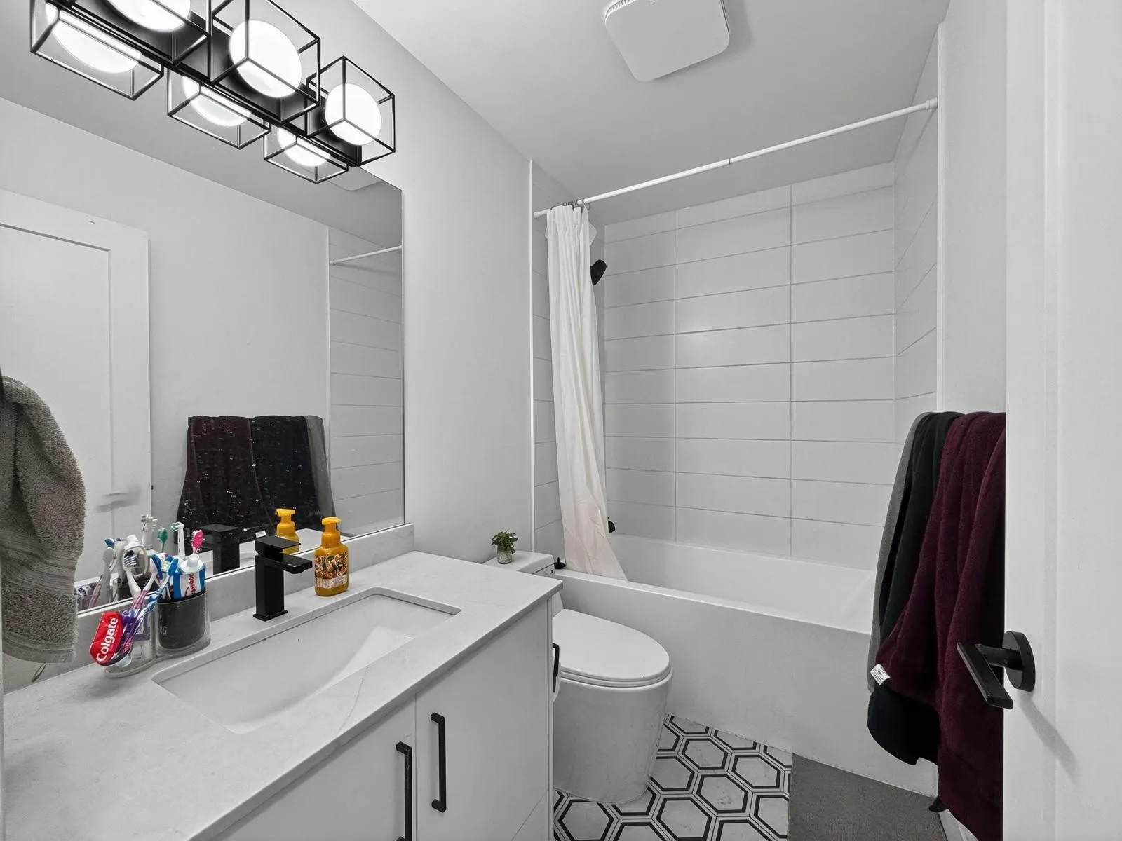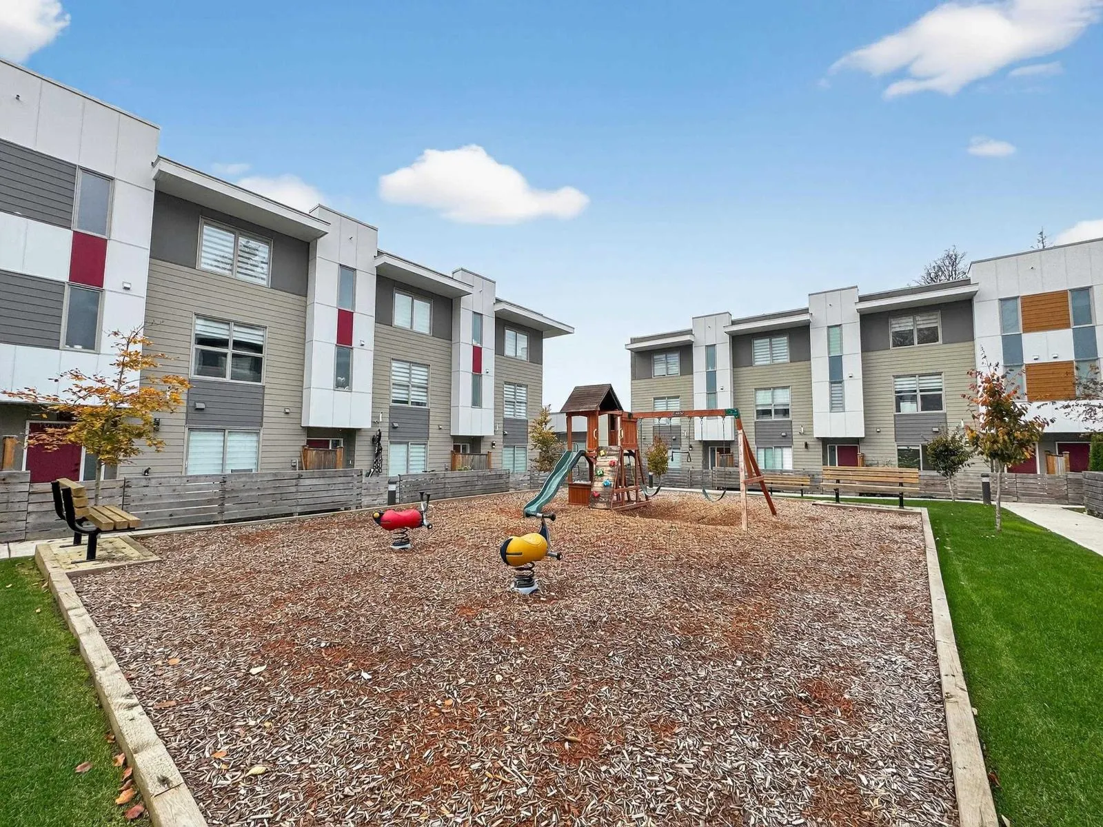 Modern and thoughtfully designed, this three-level townhome at Yale Gardens offers comfortable living throughout. The main level features an open living area with an electric fireplace, a kitchen with a built-in microwave, smart fridge, wine rack, and an office nook, plus a powder room. Upstairs includes forced air heating and A/C, a spacious primary bedroom with ensuite, two additional bedrooms,