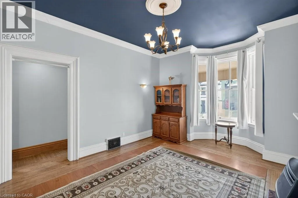 Charming 1895 Victorian Rowhouse steps from Hess Village. Step back in time while enjoying modern comforts in this character-rich home. Featuring high ceilings, original hardwood floors, this home retains its historic charm while boasting updated mechanics, including plumbing, electrical, furnace, roof, and flashing. The main floor offers a living room with a gas fireplace, two spacious bedrooms, and a generous