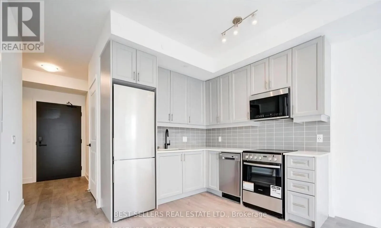 Enjoy contemporary living in Oakville’s prestigious Nuovo II Condominiums by Crystal Homes & Fernbrook Homes. This bright 586 sq. ft. unit features 1 bedroom, a den with door (perfect for a home office or 2nd bedroom), and 2 bathrooms. The open-concept layout includes a modern kitchen with 39″ wall cabinets and granite countertops, laminate flooring throughout, and smooth 9-ft ceilings
