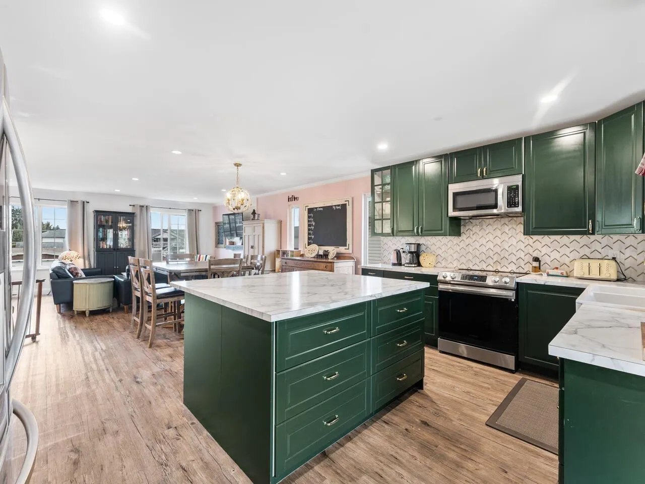 Updated family home in Langley’s desirable Murrayville area boasts main floor with open plan with attractive vinyl plank floors, gorgeous updated kitchen with door to covered deck, spacious great room with cozy gas fireplace and adjoining dining area, 3 bdrms & 2 baths including primary bdrm w/4 pce ensuite and walk-in closet. Lower level is fully finished with its own