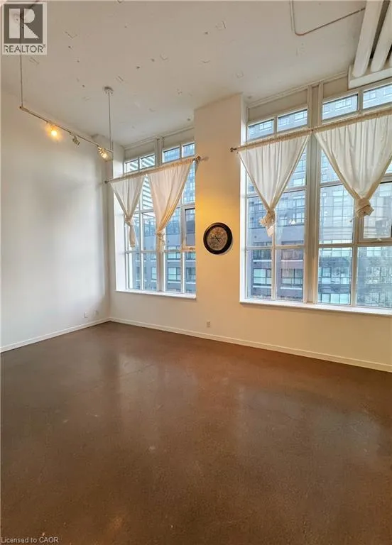 BrighBright and beautifully updated loft in Kitchener’s vibrant Innovation District, just steps from Google and the University of Waterloo School of Pharmacy! A full wall of south-facing windows fills the space with natural light, highlighting the soaring 14-foot ceilings, polished concrete floors, and sleek open-concept layout. The modern kitchen features a granite island, contemporary cabinetry, and stainless steel appliances—perfect for