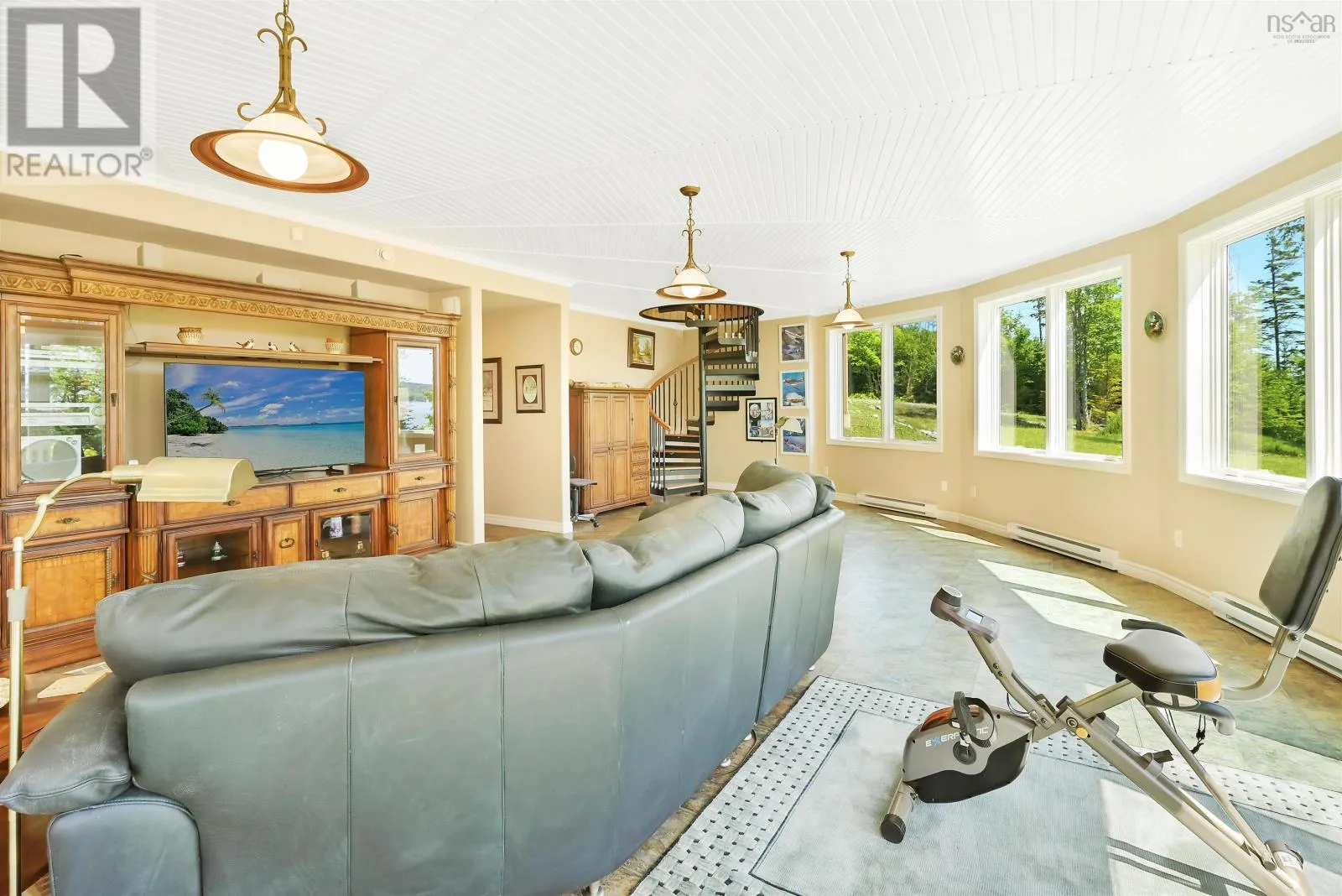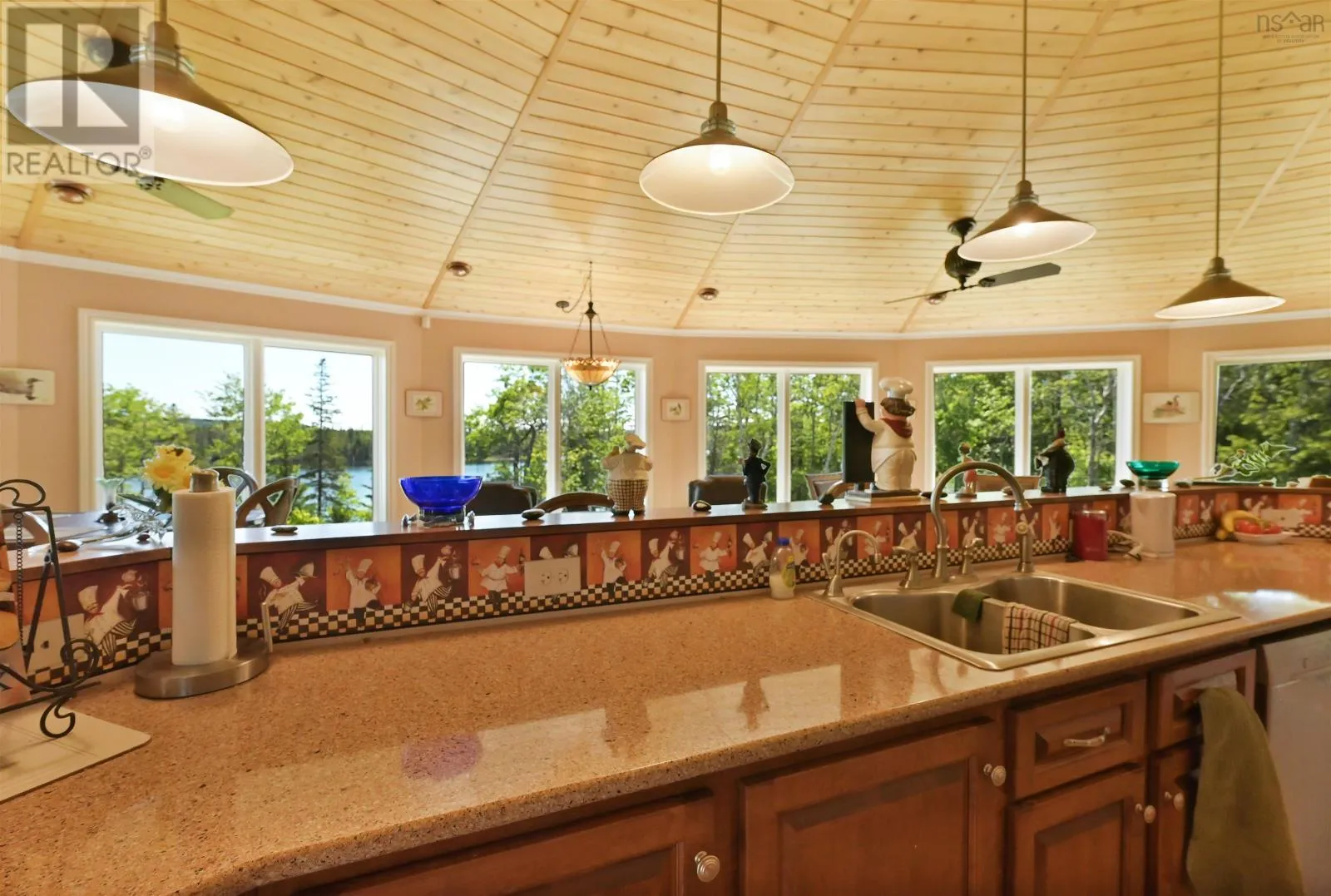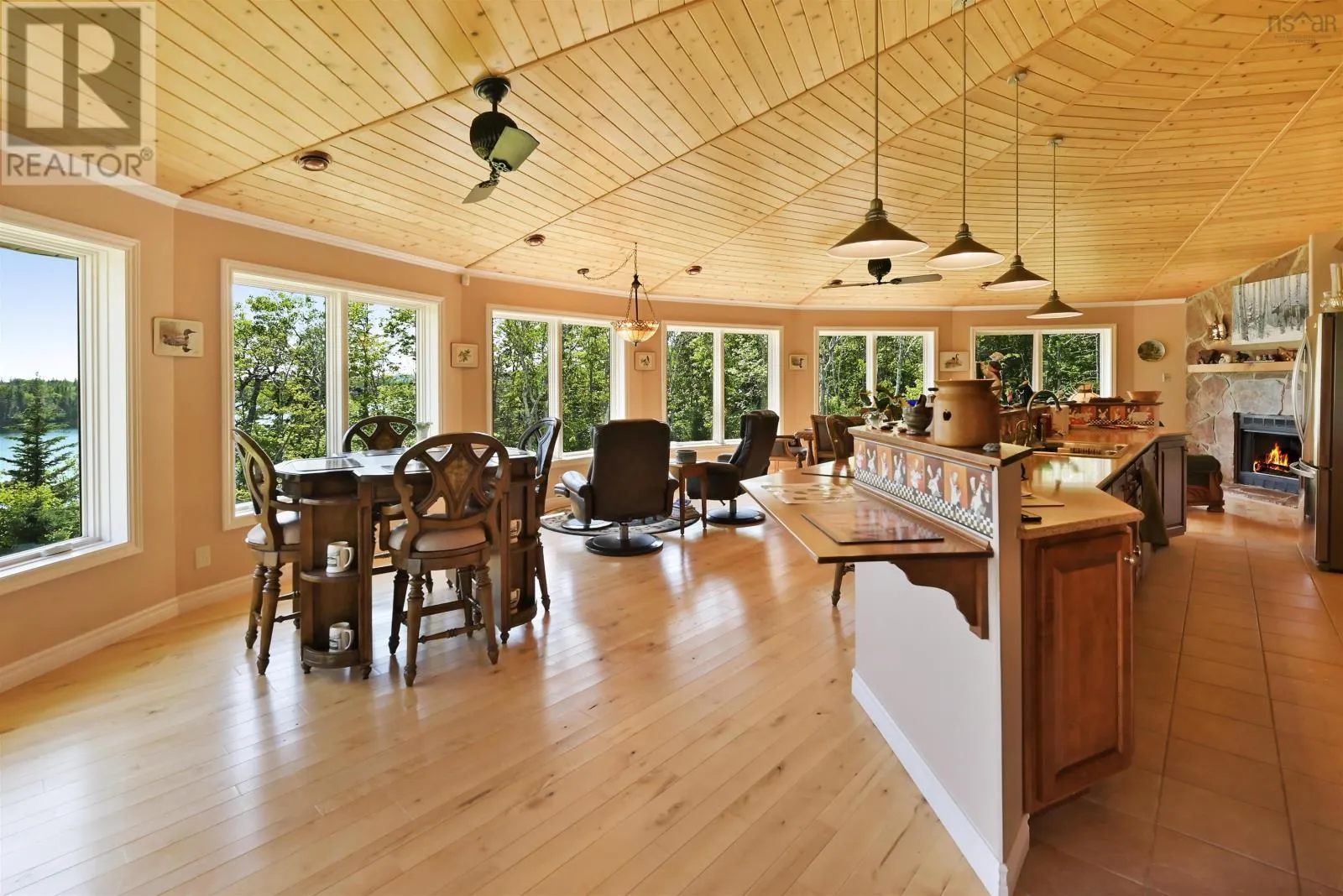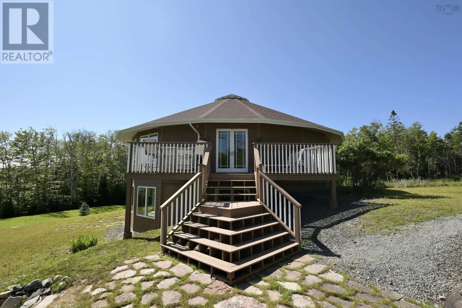 Welcome to the Round House of Cape George Estates, an exceptional Deltec-designed, 18-sided home on 2.7 acres with 200 feet of deep, sheltered waterfront on the Bras dOr Lake. With seven south-facing sides of Marvin Integrity windows on both levels, the home is filled with natural light and offers sweeping water views. The Bras dOr here is remarkably