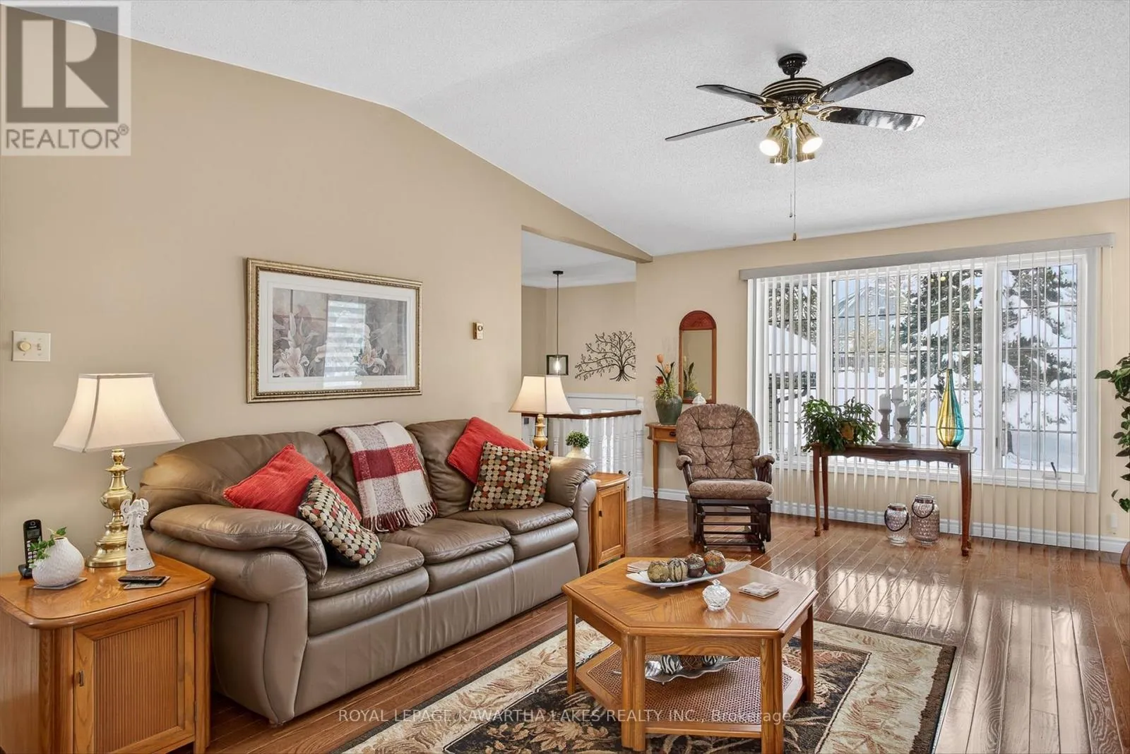 Welcome to 20 Cedartree Lane, a beautifully maintained 3-bedroom raised bungalow nestled in a quiet, sought-after pocket of Bobcaygeon-perfect for retirees, downsizers, or anyone embracing the relaxed Kawartha Lakes lifestyle. The bright and inviting main floor showcases a stunning vaulted ceiling in the living room, rich oak hardwood floors, and a cozy propane stove. Walk out to your private 3-season