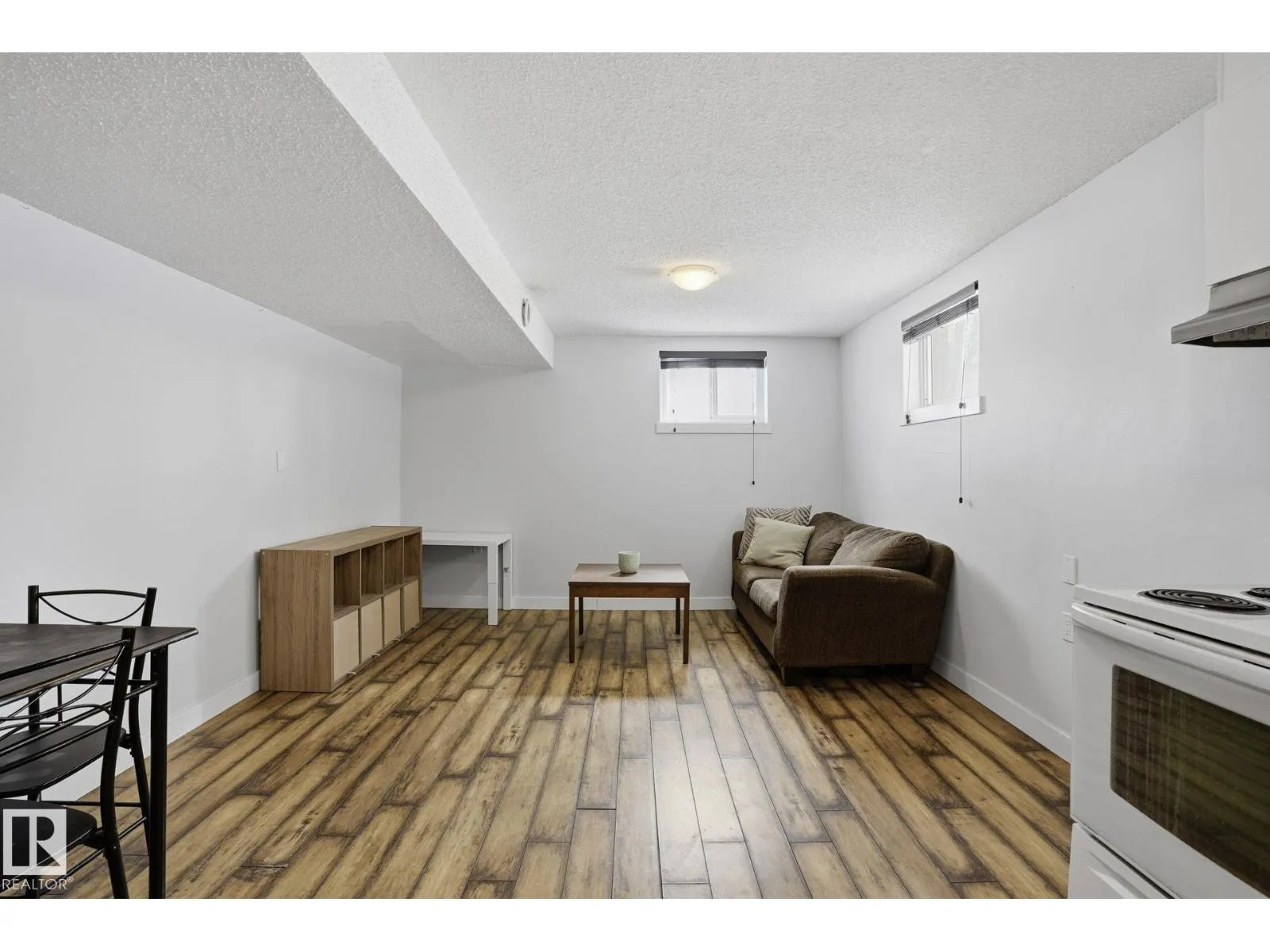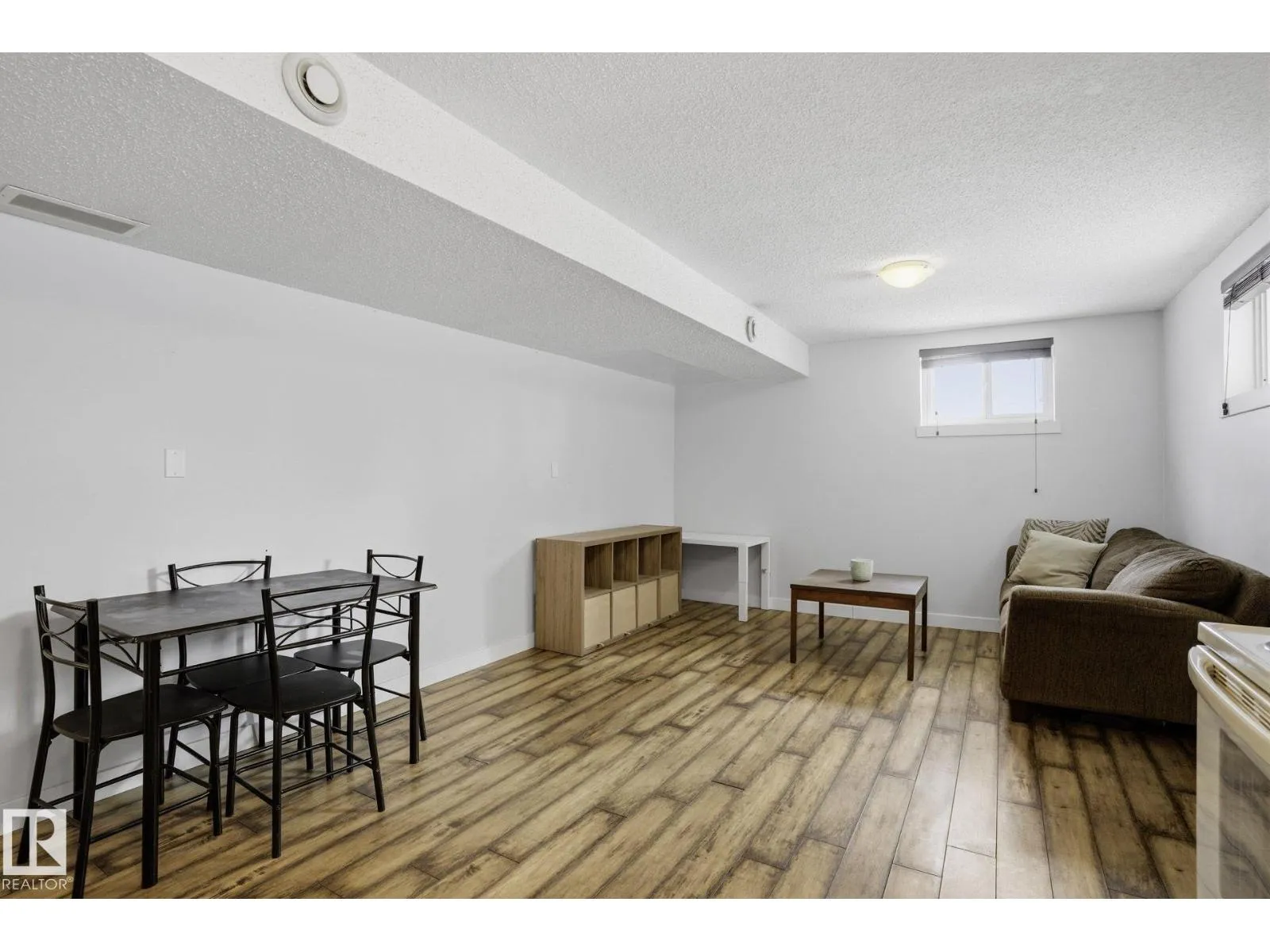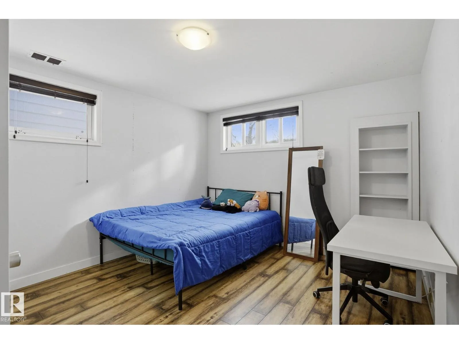 Welcome to this beautifully updated 1,032 SQ.FT. bungalow in the sought-after community of Queen Alexandra! This 4-bedroom, 2-bathroom home offers a perfect blend of character and modern upgrades. The main floor features a bright living and dining area with elegant coved ceilings and a charming original mantle fireplace (decorative). The warm kitchen showcases dark lower cabinets, white uppers,