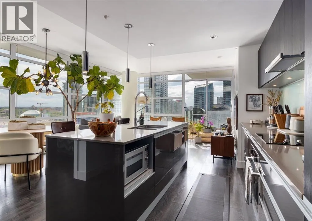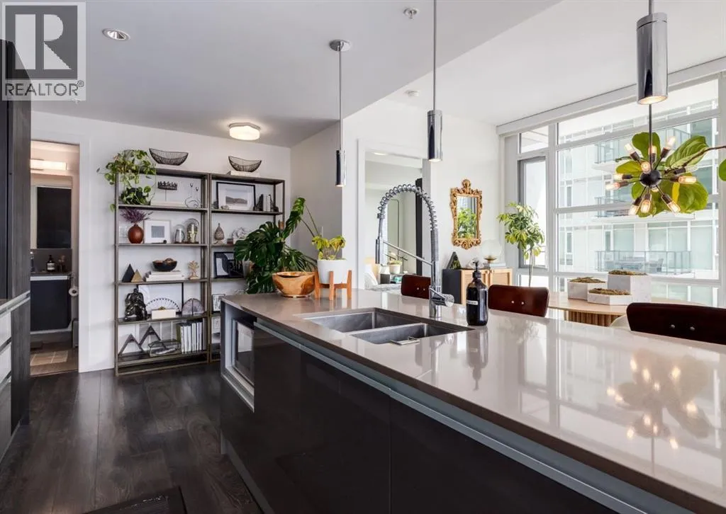 CITY & MOUNTAIN VIEWS from this stunning southwest corner unit! This bright and welcoming open-concept home is filled with natural light and offers 2 bedrooms, 2 full bathrooms, tandem titled parking for two vehicles, and a large balcony with breathtaking views you’ll enjoy every day. The modern kitchen features sleek cabinetry, stainless steel appliances including panelled refrigeration, quartz countertops,