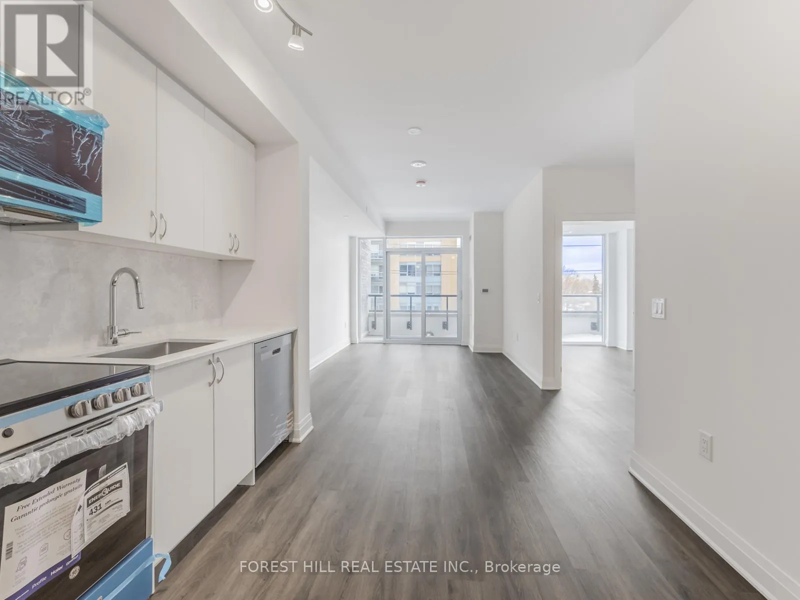Beautiful 1 bedroom + Den. Corner Unit. 760 sq ft. 1 parking. Bright all day long. South facing. Wonderful functional layout. Den could be easy second bedroom, home office or nursery. Same size as many of the two bedrooms in this elegant building. Move in and be the first occupant. February occupancies are welcome. Close to shops, grocery, bus at