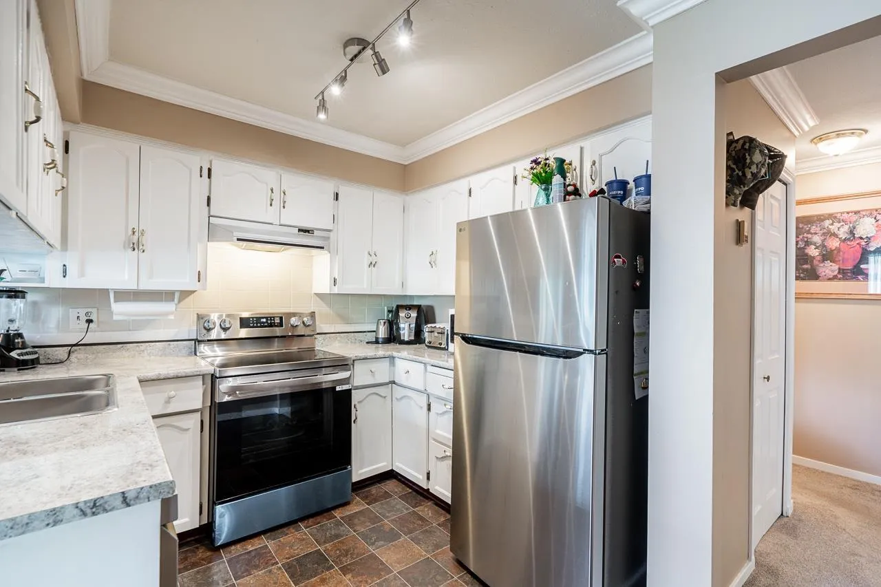Discover comfort and convenience at Evergreen Village, a vibrant 55+ community. This updated, ground-floor 2-bedroom, 2-bathroom unit features new stainless steel appliances, new kitchen sink, crown mouldings, baseboards, new carpet, and new bathroom floors. Enjoy in-suite laundry, a walk-in storage closet, and a huge wrap-around patio. It includes one parking spot and one storage locker. Amenities abound with an indoor