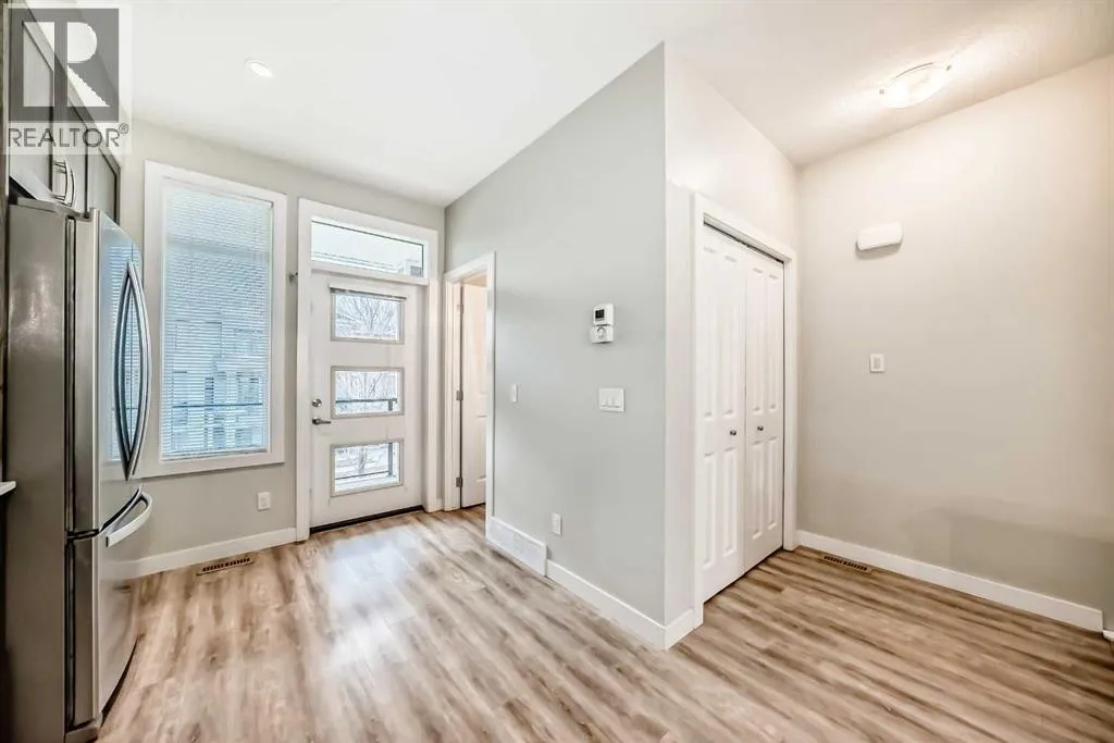 Welcome to this beautifully maintained executive townhome in vibrant Seton, completed in 2018 and featuring high-end finishes throughout. Offering 2 bedrooms, 2.5 bathrooms, and an attached tandem double garage, this home is the perfectblend of comfort, style, and convenience. Step inside to an inviting, open-concept main floor with 9-ft ceilings, luxury vinylplank flooring, and upgraded lighting fixtures. The chef-inspired kitchen