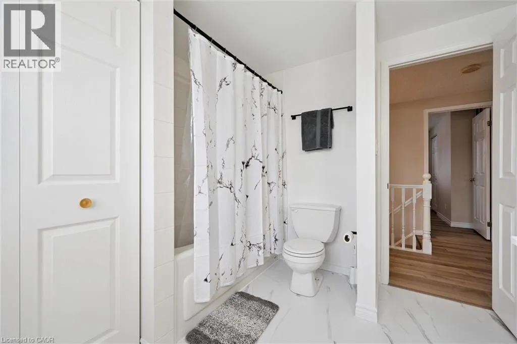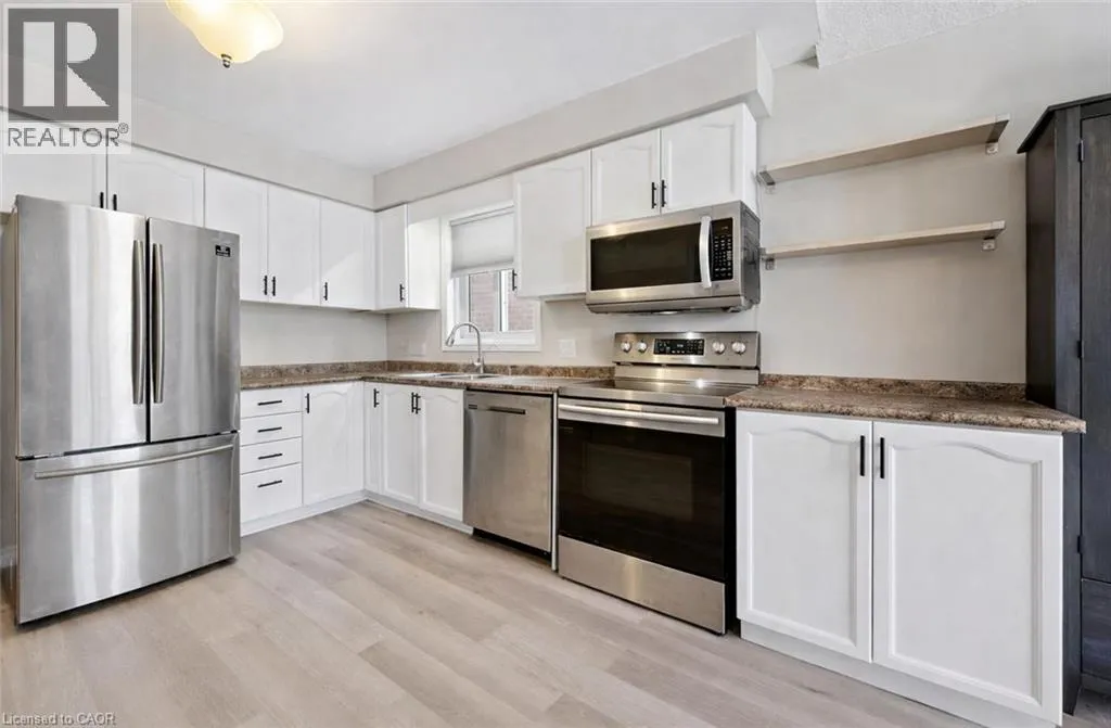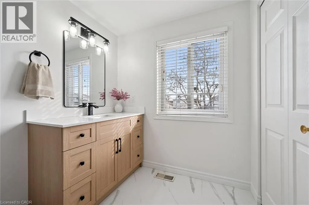 allowing lots of natural light to fill the room, creating the perfect setting for relaxing or hosting guests. Updated kitchen offers fresh white cabinetry, ample counter space & S/S appliances. Dinette area also features a vaulted ceiling & sliding doors leading to the backyard, creating a beautiful backdrop for enjoying morning coffee or summer meals outdoors. Convenient 2pc bathroom completes this level. Upstairs, you’ll find 3 generously sized bedrooms, each with large windows & plenty of closet space. Renovated 4pc bathroom features chic vanity with quartz countertops, marble-inspired tile, shower/tub combination & an additional storage closet. Finished basement provides valuable additional living space, highlighted by a large recreation room that is ideal for a home gym, playroom, office or media area. Step outside to a large deck overlooking a generously sized backyard that backs onto beautiful mature trees, creating a peaceful & private setting. Fully fenced yard offers plenty of space for children & pets to play, along with room to garden, entertain or simply relax & enjoy the surrounding greenery. This home backs onto Rittenhouse Park offering green space, playgrounds, sports fields & network of walking trails right at your doorstep. Just two homes down, you’ll find direct access to the park with pathways that lead to Glencairn Public School & Catholic Cardinal-Léger School—perfect for families. You’re also just seconds from nearby shopping centre with groceries, restaurants, fitness centre & everyday conveniences, along with easy access to Hwy 8 for commuters. (id:62650)