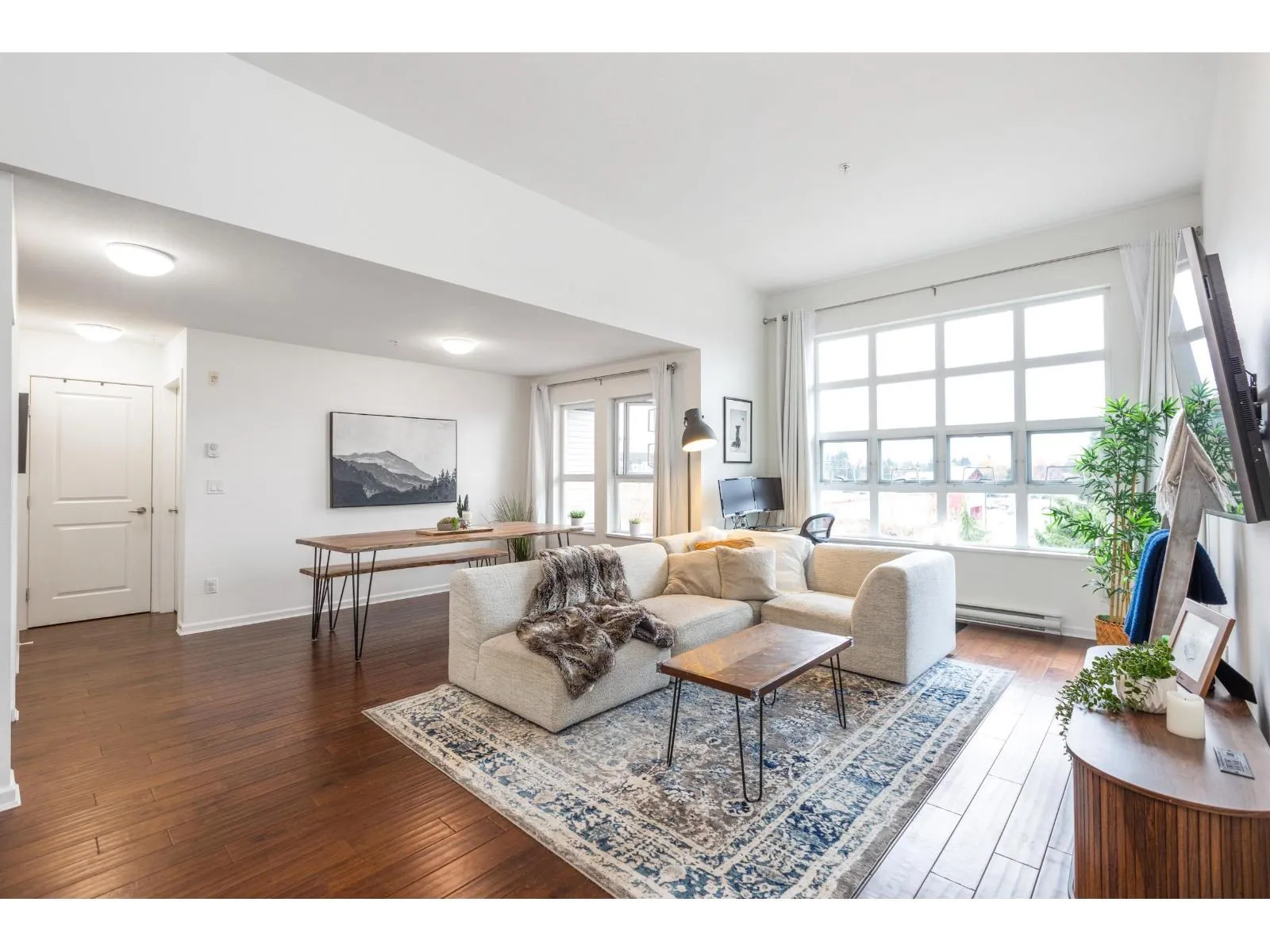 ONLY ONE LIKE IT IN COMPASS APARTMENTS – This unique, custom-designed penthouse condo features an impressive open-concept layout with soaring 12-ft ceilings. The living room, kitchen, and dining area flow seamlessly together, creating the perfect space for entertaining. Generously sized at 980 sq. ft., the unit offers newer paint and stunning engineered hardwood flooring throughout. Bright and beautifully lit with