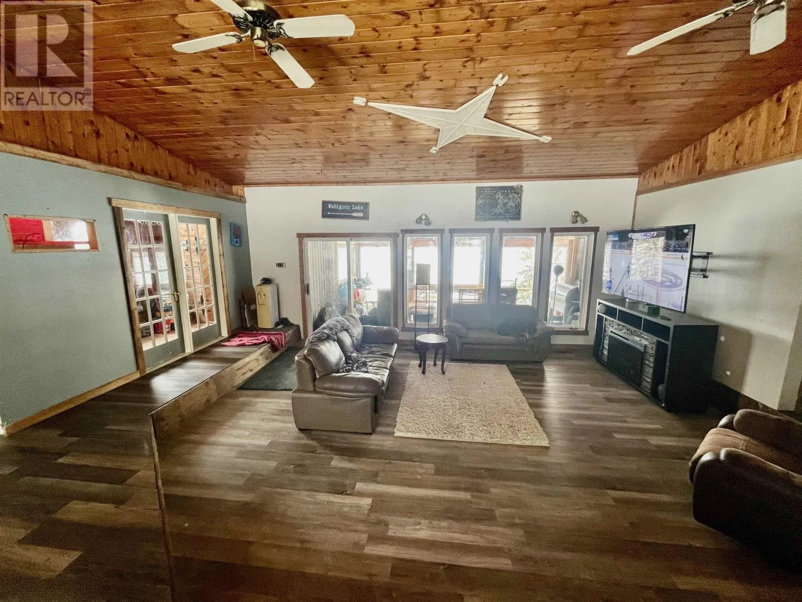 This lakefront rural country living is at its best with tons of privacy on the 8.42 acres on Wabigoon Lake. A raised bungalow with 1640 sq. ft. 2+1-bedrooms, 1–4-piece bathroom, an open concept kitchen/dining and sunken living room for your entertaining comfort. Main floor laundry and sauna. Access to the front covered-in veranda and side deck. Down to the lower