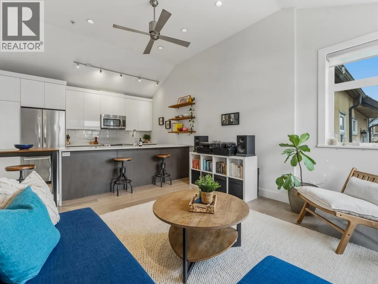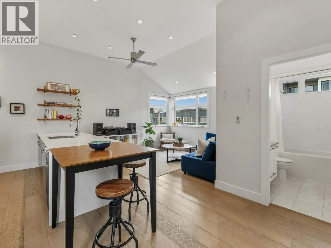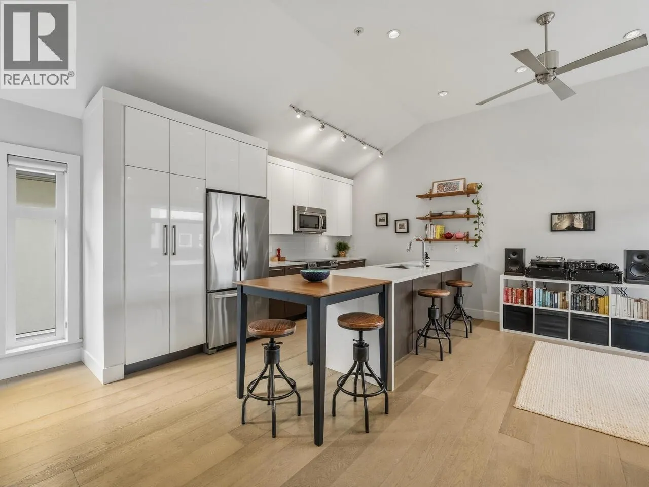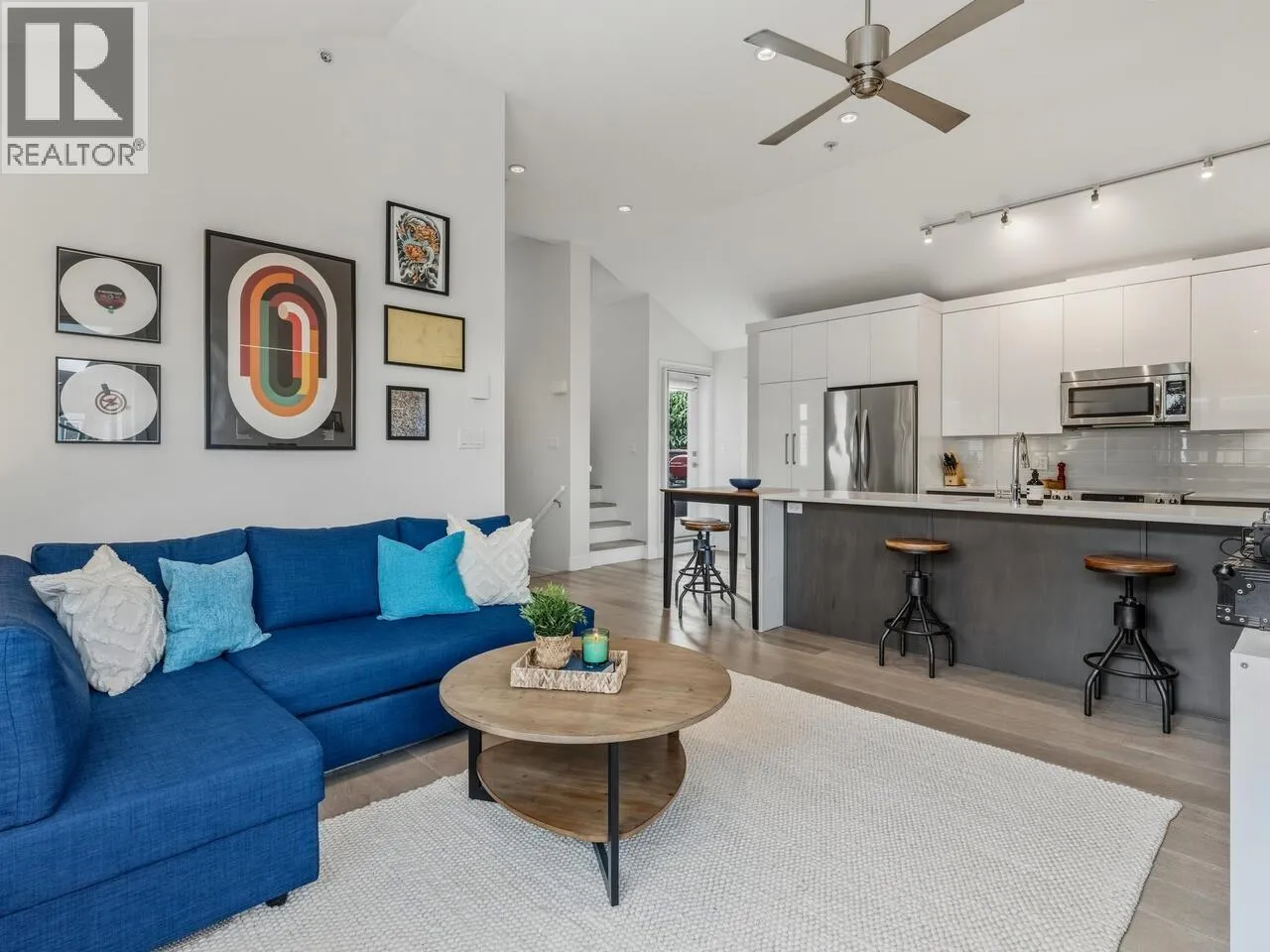 Steps from the best of Commercial Drive, this 10-year-old, 1,021 square ft townhome offers the perfect blend of style and versatility. The main floor is highlighted by dramatic 11´ vaulted ceilings, a kitchen perfect for entertaining, and an airy open-concept living area. Retreat to the private balcony for evening wine or a BBQ. With 2 spacious bedrooms plus a flexible
