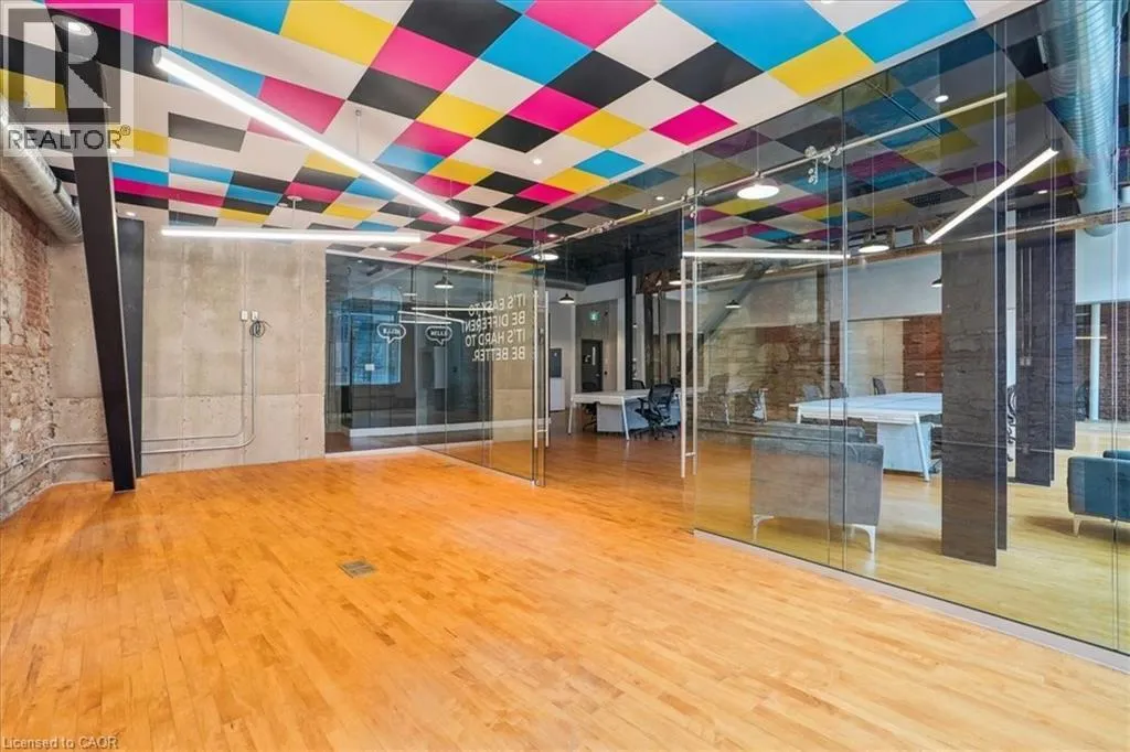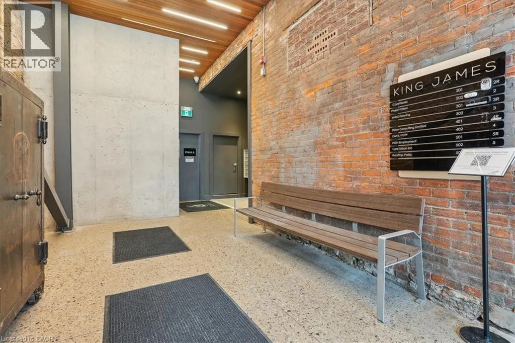 Pristine office space available at the prestigious King James Building! This one-of-a-kind suite offers 2,800 square feet with soaring 16′ hammered-tin ceilings, floor-to-ceiling arched windows, glass-enclosed boardroom, kitchen, in-suite washrooms (including one fully-AODA compliant), storage closets, exposed ductwork, post-and-beam construction, multiple glass-enclosed, private offices, and access to the fifth floor common area terrace! Serviced by a fob-secured elevator that opens
