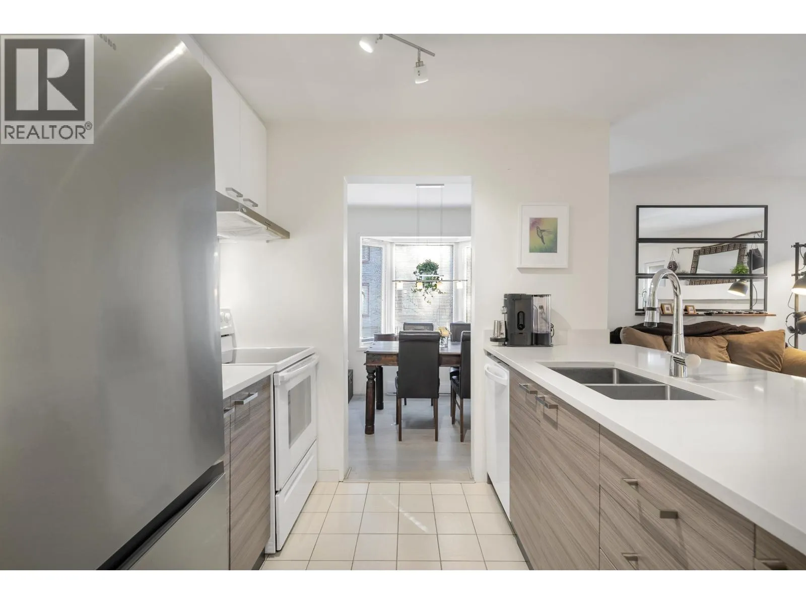 Bright corner 2 Bed/1 Bath with 951 square ft of living with smart design and calm surroundings. This tastefully renovated open kitchen-with a generous counter for cooking, hosting, and everyday life-makes the home move-in ready (no renovation stress, no surprise costs). Extra windows mean more natural light, while the quiet, tree-lined outlook and nearby walking path offer a peaceful daily