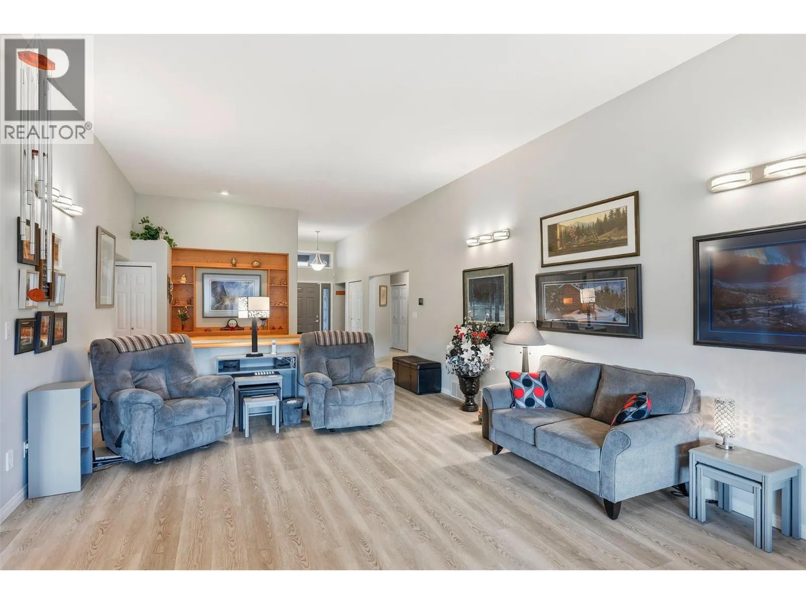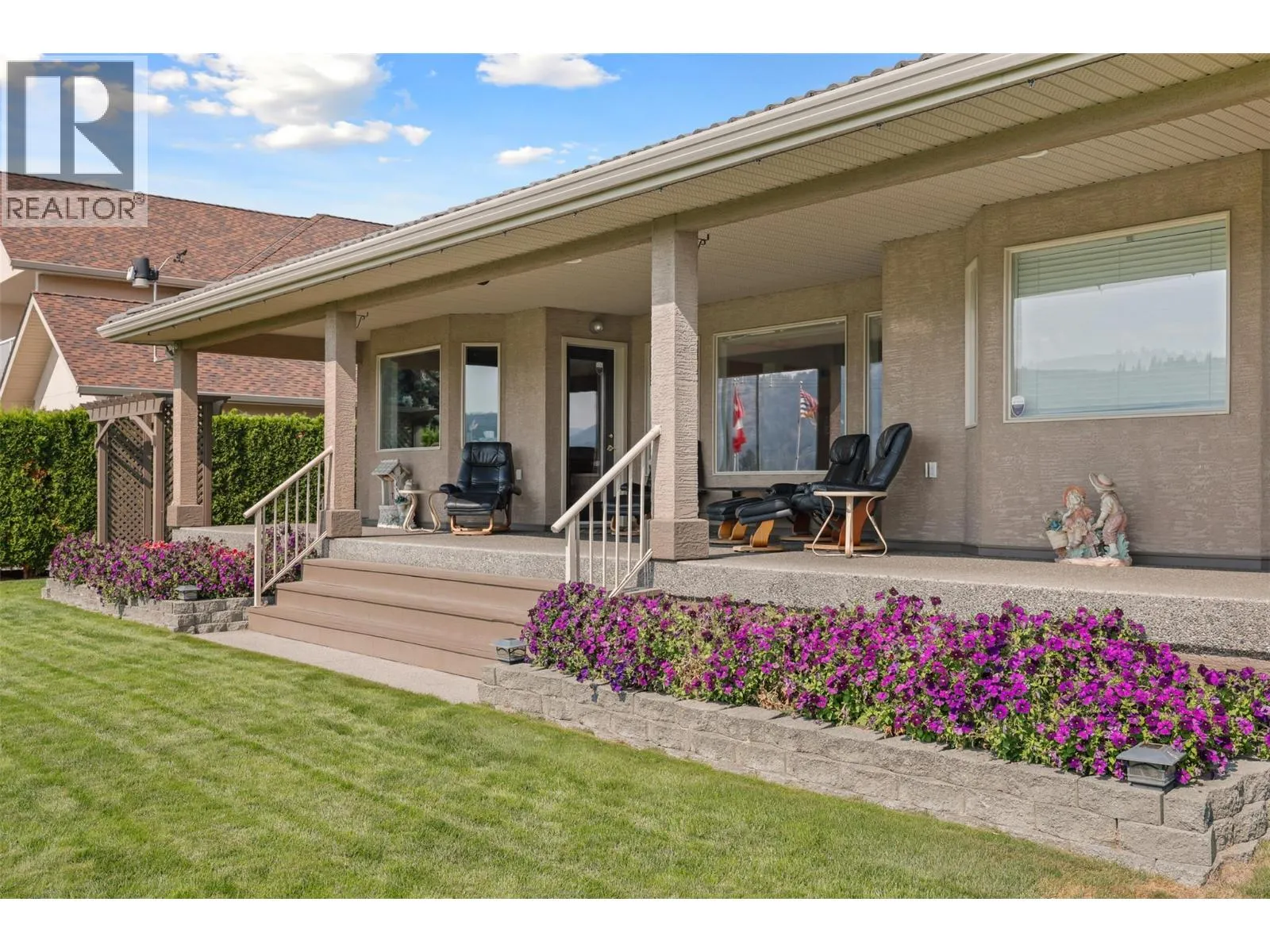 Set along a championship golf course, this custom executive home offers effortless one-level living with 2 bedrooms up and 1 down. Start your mornings on the expansive covered deck overlooking the 5th green and fairway, complete with misters for warm sunny days, and unwind in the evening with stunning sunsets. Take your golf cart to the clubhouse restaurant for dinner