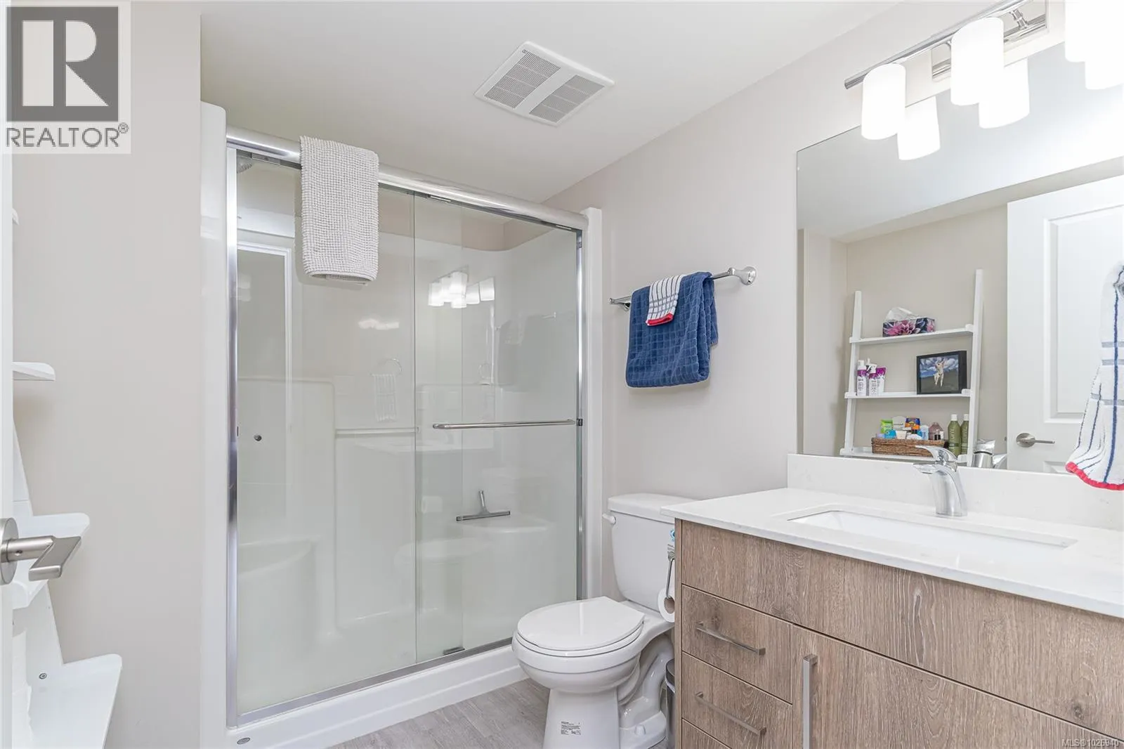 Discover Thetis Lakeside! Highly desirable development (2019) perfectly positioned just steps from expansive green space. This bright 2 bed/2 bath unit features a spacious & split-bedroom layout & a new (Feb 2026) spa-inspired ceramic tile walk-in shower in the primary ensuite. The open-concept main living area includes a kitchen w/ a stone countertop central island, stainless steel appliances & plenty