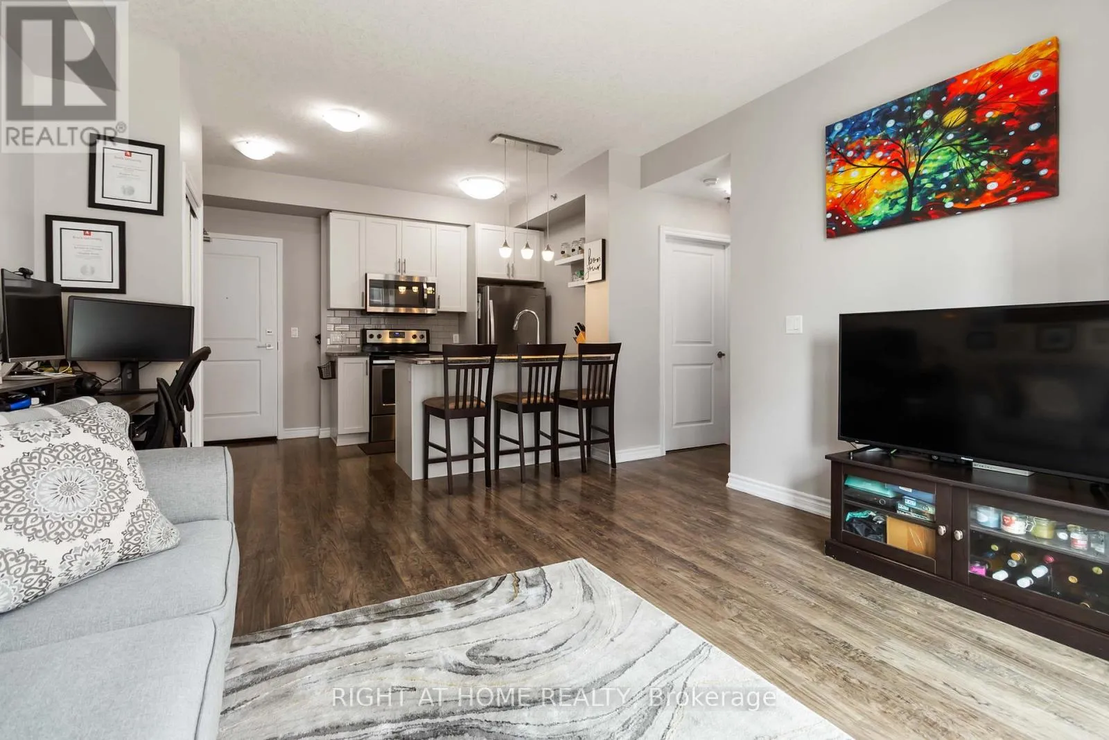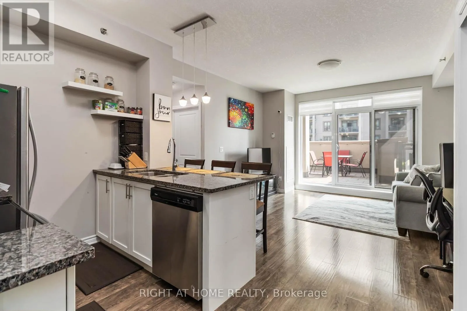 This 1 bedroom condo features a 260 square foot private terrace, offering a spacious outdoor lounging space that is rare for a condo. Perfect for entertaining family and friends, the outdoor terrace is an extension of the interior living space – providing tremendous value! The open concept kitchen/living room is properly appointed with adequate storage, stainless steel appliances and floor