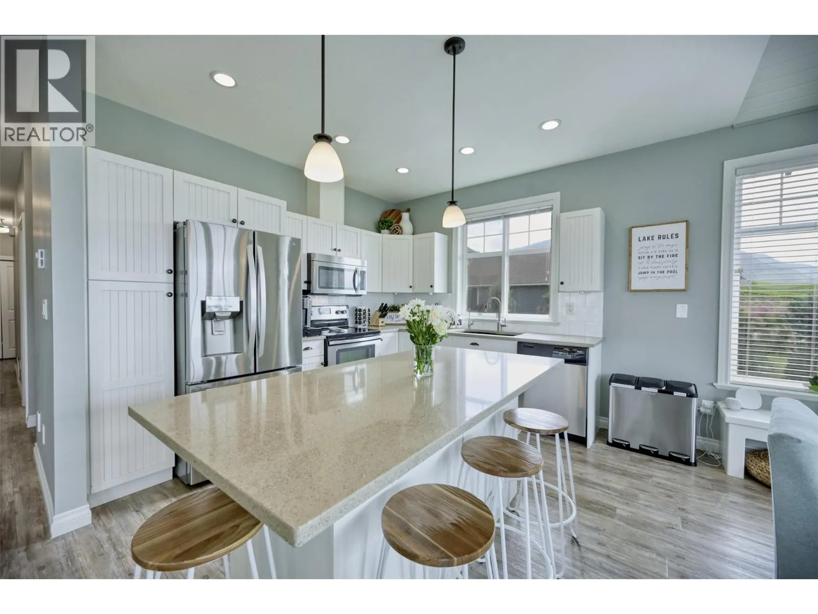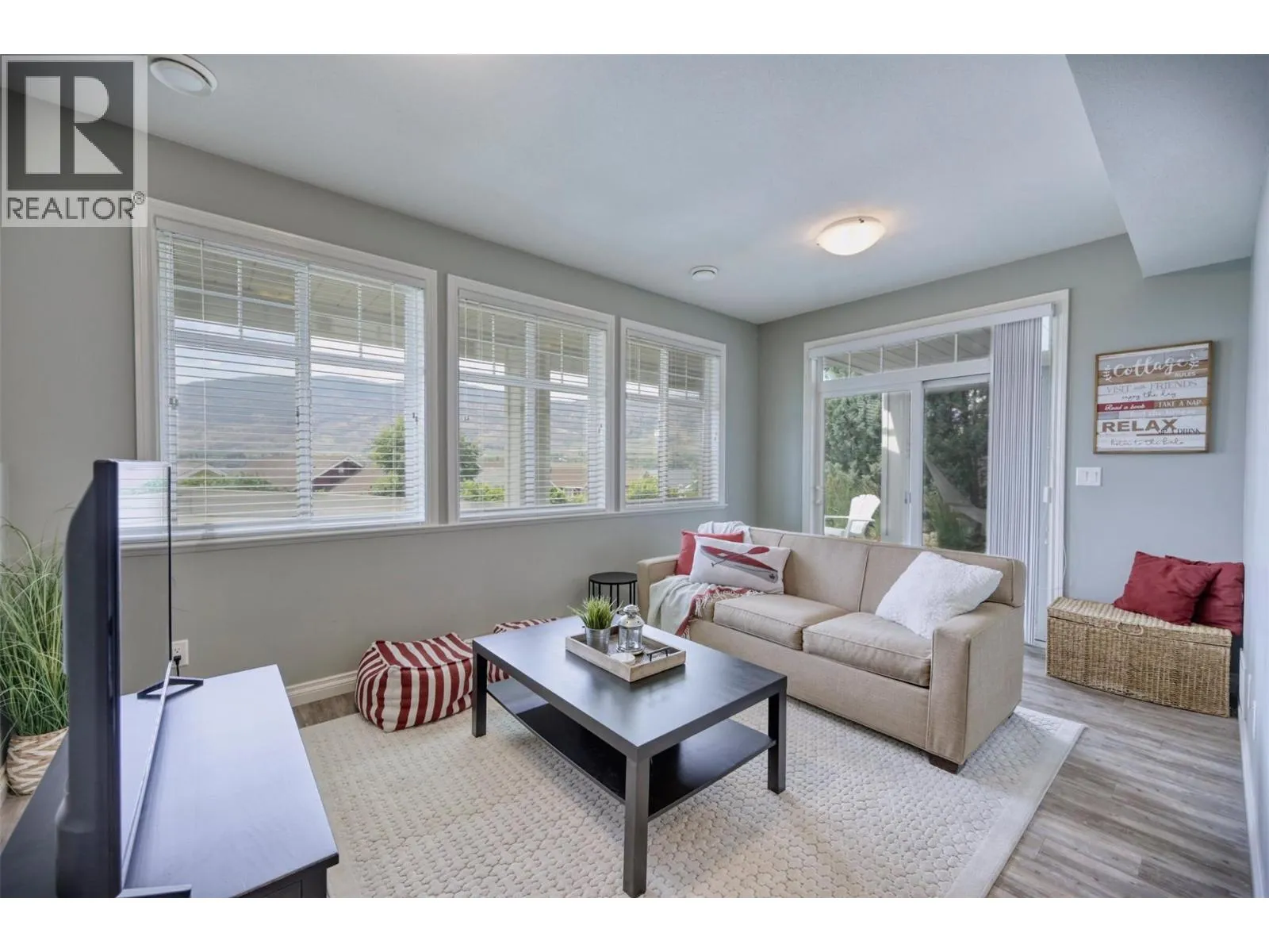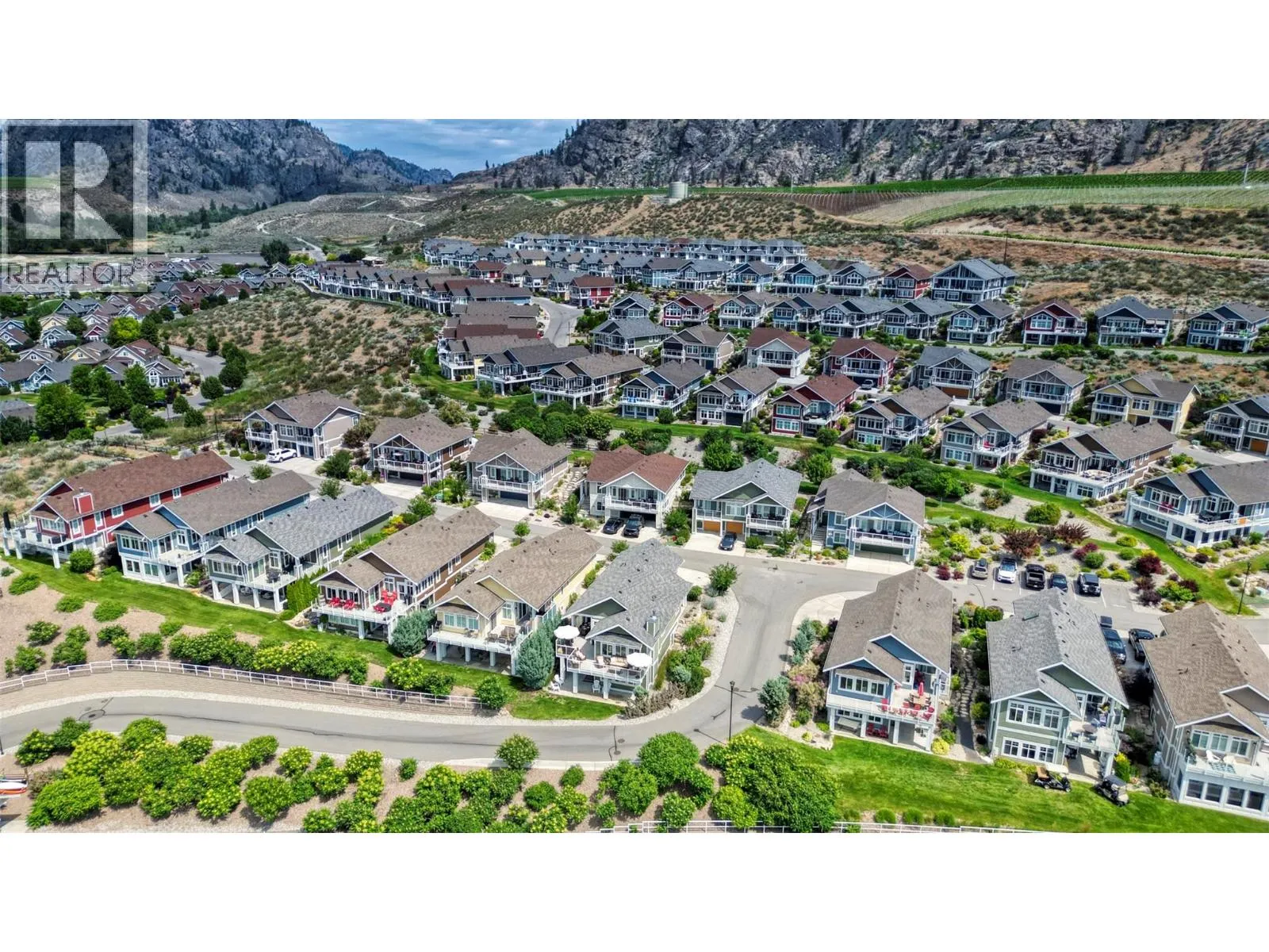 Corner Lot, Stunning Home at The Cottages on Lake Osoyoos, steps to the sandy beach. – Beautiful and spacious PINOT floor plan featuring 5 bedrooms and 3 bathrooms and stunning panoramic Lake Views. This is an entertainers home with plenty of parking space, tons of room for family, friends, guests, and an expansive glass railing deck to enjoy the view