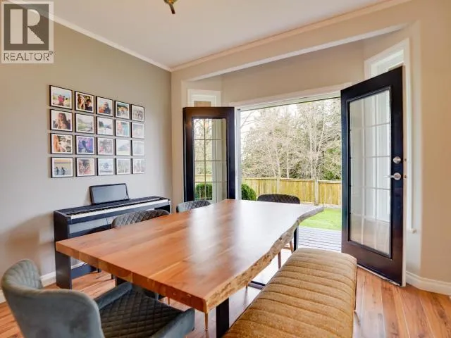 Timeless design meets private coastal living in this elegant yet understated home. A graceful sweeping staircase leads to four spacious upper level bedrooms,ideal for comfortable family living. The main floor features a warm fireplace and seamless walk out access to a private covered deck with outdoor fireplace-perfect for year round enjoyment. Set on a large, maturely landscaped lot with partial