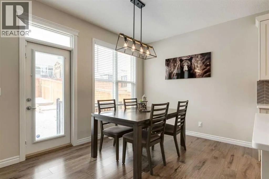 porch that sets the tone from the moment you arrive. Step inside to discover 9’ ceilings, elegant neutral tones and oversized windows that bathe the main floor in natural light. The sleek, contemporary kitchen is both stylish and practical, showcasing white cabinetry, quartz countertops, a large central island with breakfast bar seating, stainless steel appliances, a striking tiled backsplash and a generous pantry. The dining area comfortably accommodates gatherings of family and friends, with patio doors that open to the backyard, creating a seamless indoor-outdoor flow. The open concept living room is warm and inviting, anchored by a cozy gas fireplace; perfect for relaxing evenings at home. A two piece bathroom and mudroom complete the main level. Upstairs, you will surely be impressed by the bonus room with stunning vaulted ceilings offering incredible flexibility, whether used as a family media space, home office, playroom, or quiet reading lounge. A convenient laundry room add both comfort and practicality. The spacious primary suite serves as a peaceful retreat, complete with a walk in closet and a well appointed 5 piece ensuite featuring a deep soaker tub; ideal for unwinding at the end of the day. Two additional generously sized bedrooms, one with another walk-in closet and a full 4 piece bathroom complete the upper level. The unfinished lower level with future bathroom rough in, provides endless potential for future development to suit your needs. Outside, enjoy the west facing backyard; spacious deck with privacy wall, children’s play structure, two sheds and trees; a wonderful space to relax, entertain or soak up the afternoon sun. Notable recent updates; Air conditioning (2020), Fridge (2024), Gemstone lighting (2024) and new Gutters, Eavestroughs and Shingles (2025). Located in a vibrant and family friendly community with parks, playgrounds and scenic walking paths and offering quick access to major routes including Shaganappi Trail, Stoney Trail and Sarcee Trail; this exceptional home delivers the perfect blend of style, comfort, and convenience. Schedule your private showing today; this home won’t last long! (id:62650)