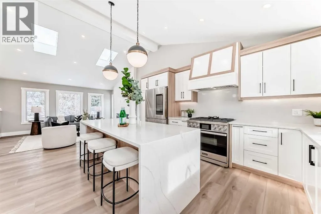Stunning redesigned and renovated home from top to bottom. Now with new vaulted ceilings enhancing the bright and open great room spaces. Custom two toned kitchen cabinetry, with 36 inch Dacor gas stove, Samsung 4 door family hub fridge, large eat up island with waterfall quartz and easy access to south deck and yard. Mudroom also just off kitchen.