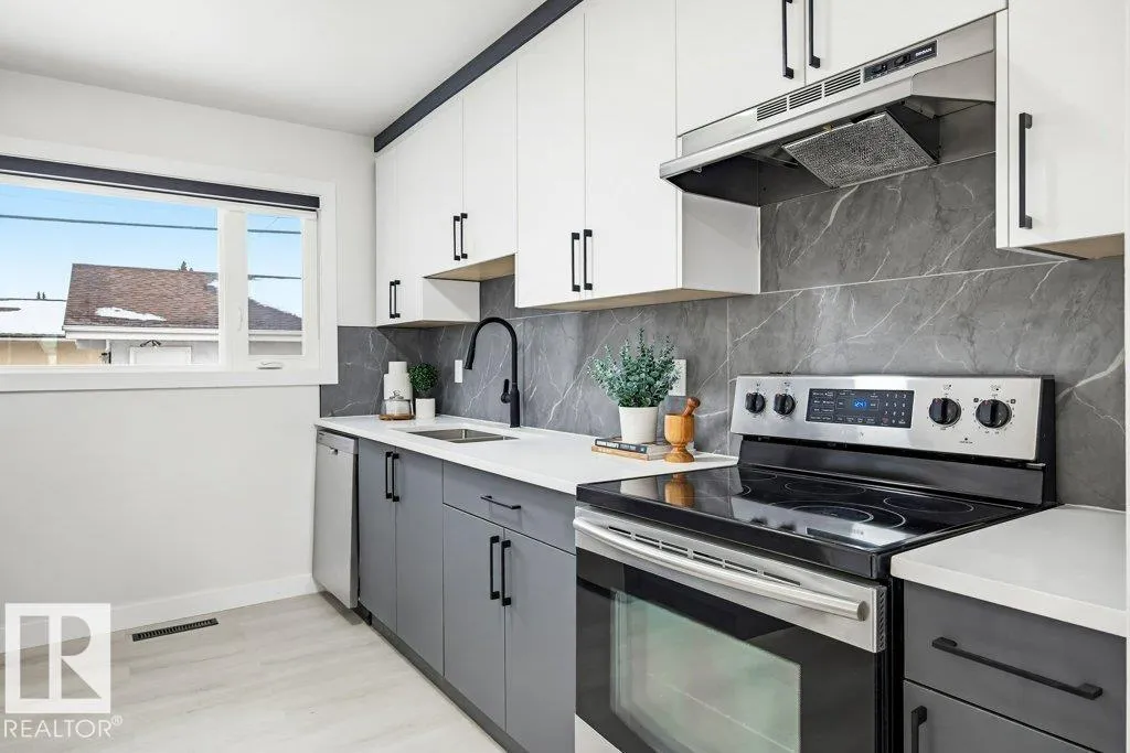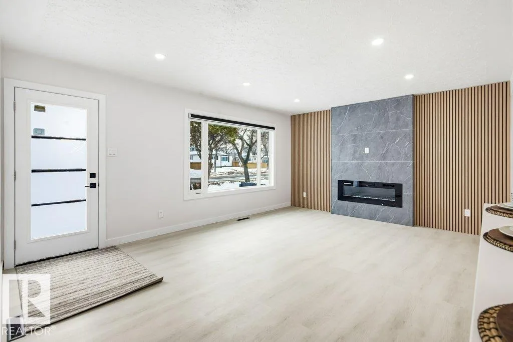 Welcome to Elmwood with this RENOVATED 4 bedroom | 2 full bathroom, open-concept bungalow. Designed for both comfort & style, this home is completely transformed & thoughtfully updated throughout featuring; new luxury vinyl plank flooring, new windows, modern baseboards & trim, upgraded interior doors, striking feature-wall fireplace, stylish lighting, fresh paint throughout, custom cabinetry, sleek zebra blinds, elegant quartz countertops